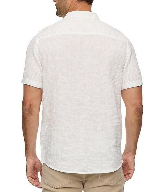 From Flag and Anthem, this shirt features:Tailored athletic fitPoint collarShort sleevesButton-front closureSingle patch pocketContrast chambray fabric inside collar stand, back yoke, front placket and sleeve cuffsIncredibly cool and comfortable cotton gauze fabricMachine wash/tumble dryImported.