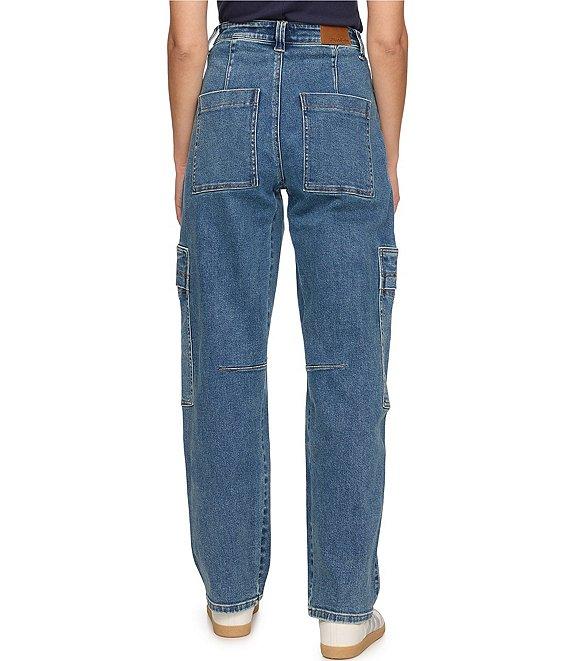 From Flag and Anthem, these jeans feature: Mid-rise Relaxed, looser silhouette Cut that’s wide from the hips and thighs with a slight taper at the ankles Two front pockets Two back pockets Utility cargo pockets Comfortable fit Versatile retro wash Cotton/polyester/spandex denim Machine wash/tumble dry Imported.