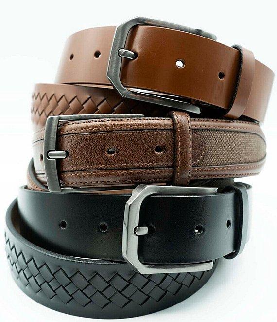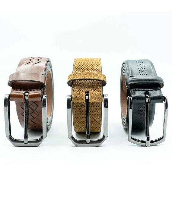 From Flag LTD., this belt features: Calfskin leather with laser perf details Soft nubuck leather lining Brushed pewter buckle approx. 1.25" width Made in Brazil Imported. Suggested belt size: Take your existing pants size and add two inches. E.g. if your pants size is 32, purchase a size 34.