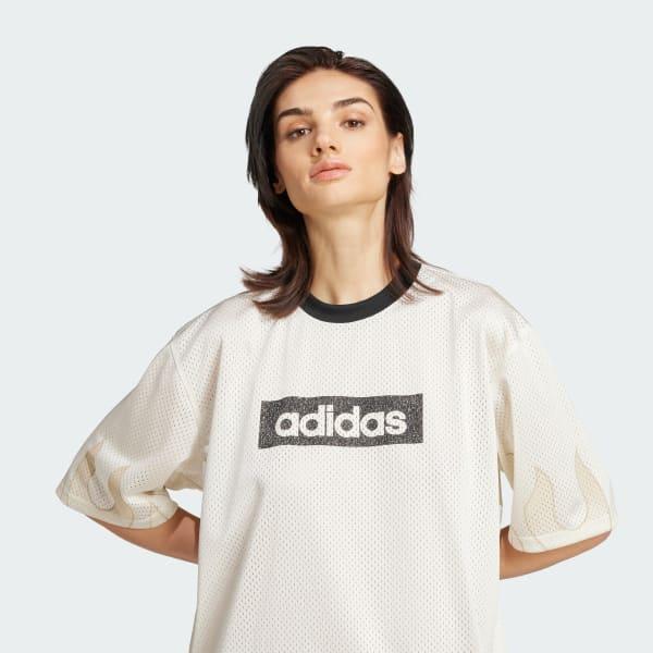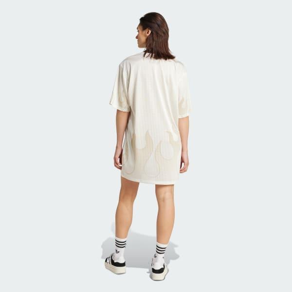 This adidas dress borrows inspiration from the sports world to create a look that's at once modern and nostalgic. The mesh build is patterned with a flame graphic, adding a playful touch. An adidas graphic on the chest celebrates brand heritage.