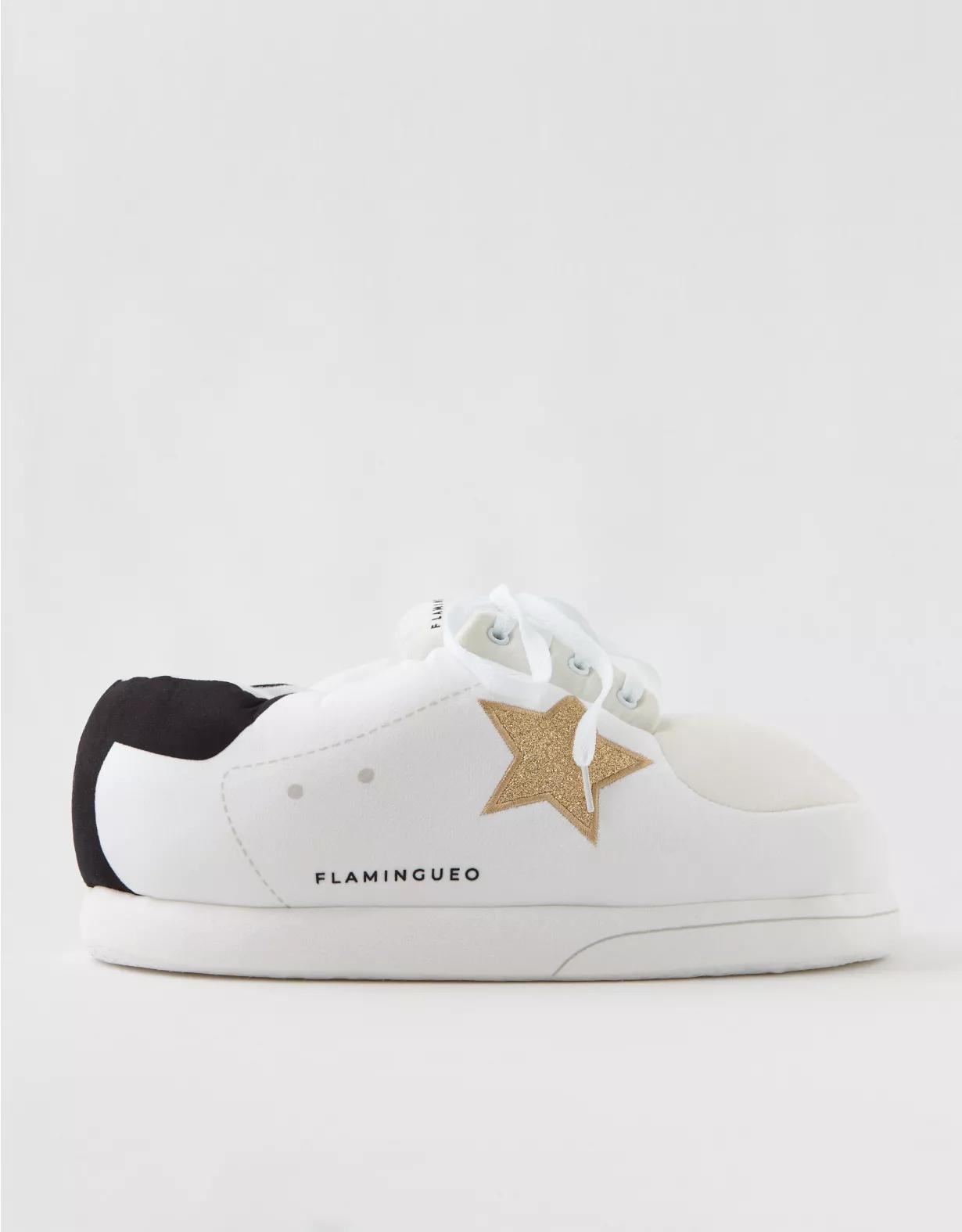 Socozee White and Black Spotted Faux Fur Flatform Slippers