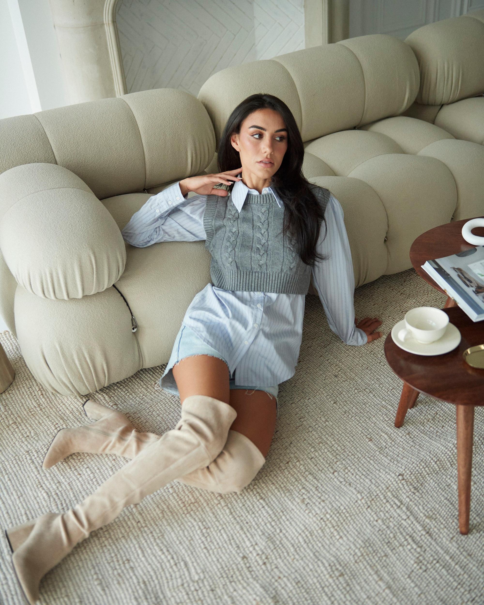 Get ready to layer up in style with our Flannery Layered Sweater! Featuring a unique mixed media design, this sweater includes a knitted crop vest and a striped shirt for a cute and cozy look. Long sleeves make it perfect for the upcoming fall season.