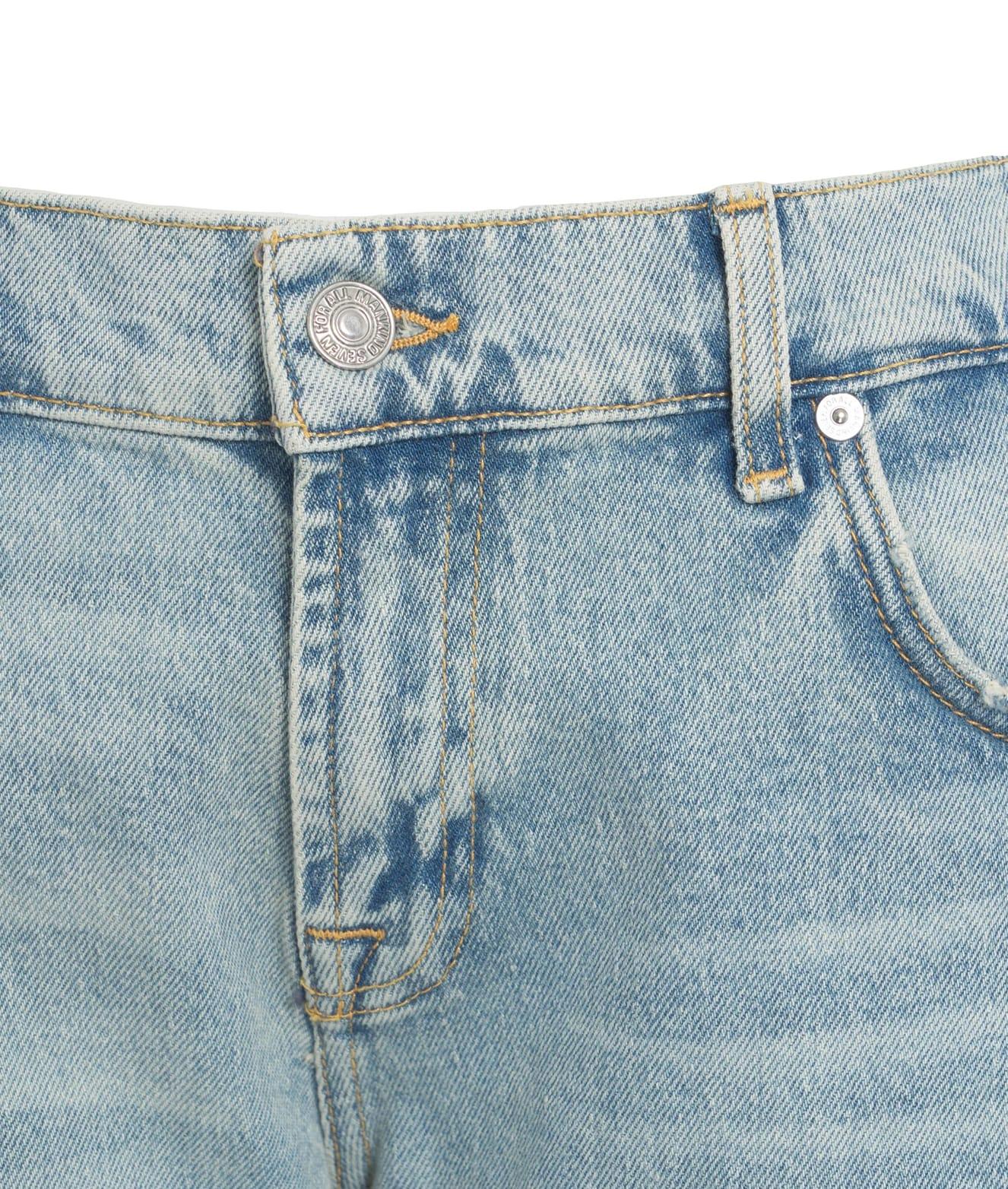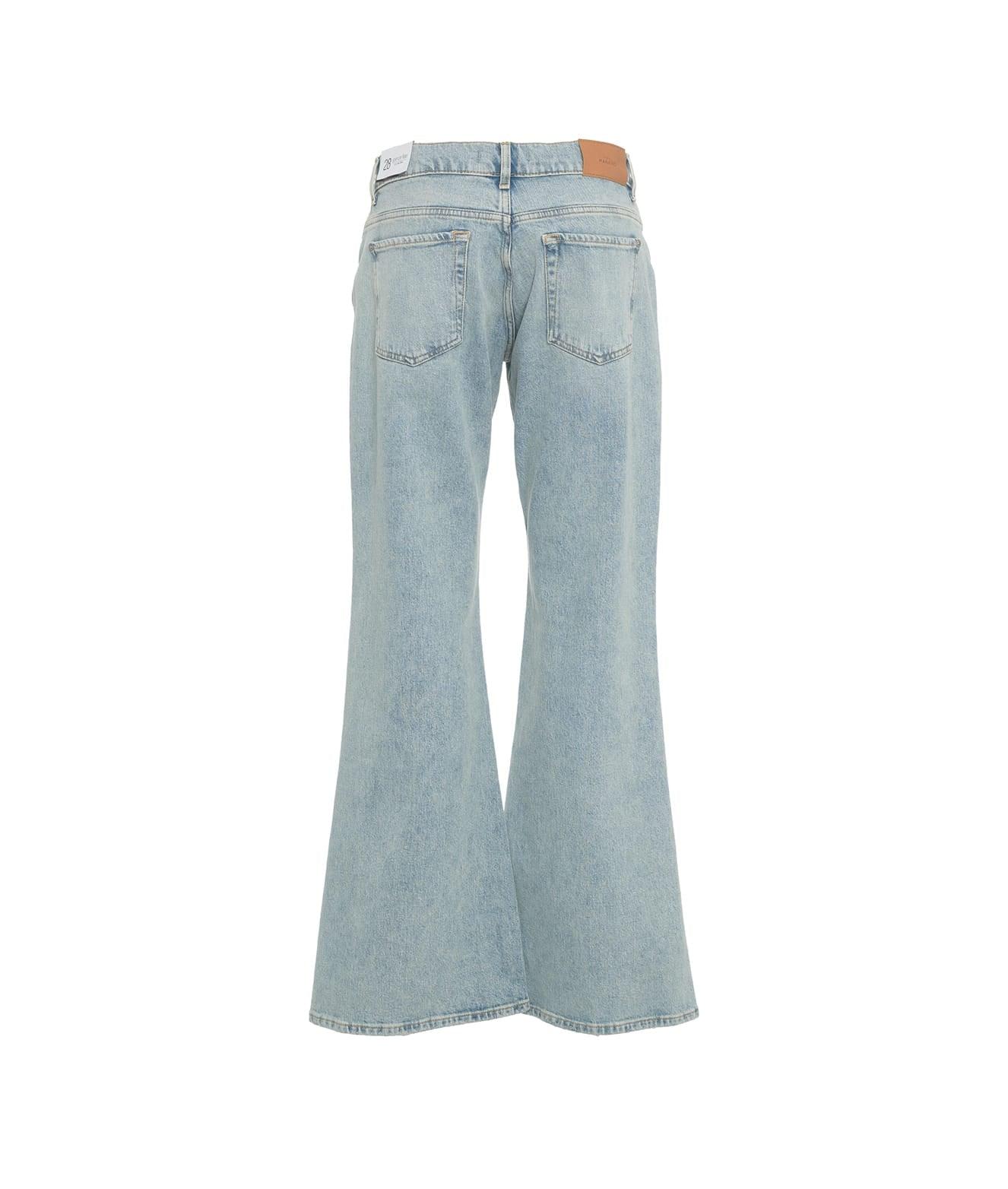 Belt loopsFlared legFive pocketsFront button and zip closureWide legLogo patchWashed areasMidwaist