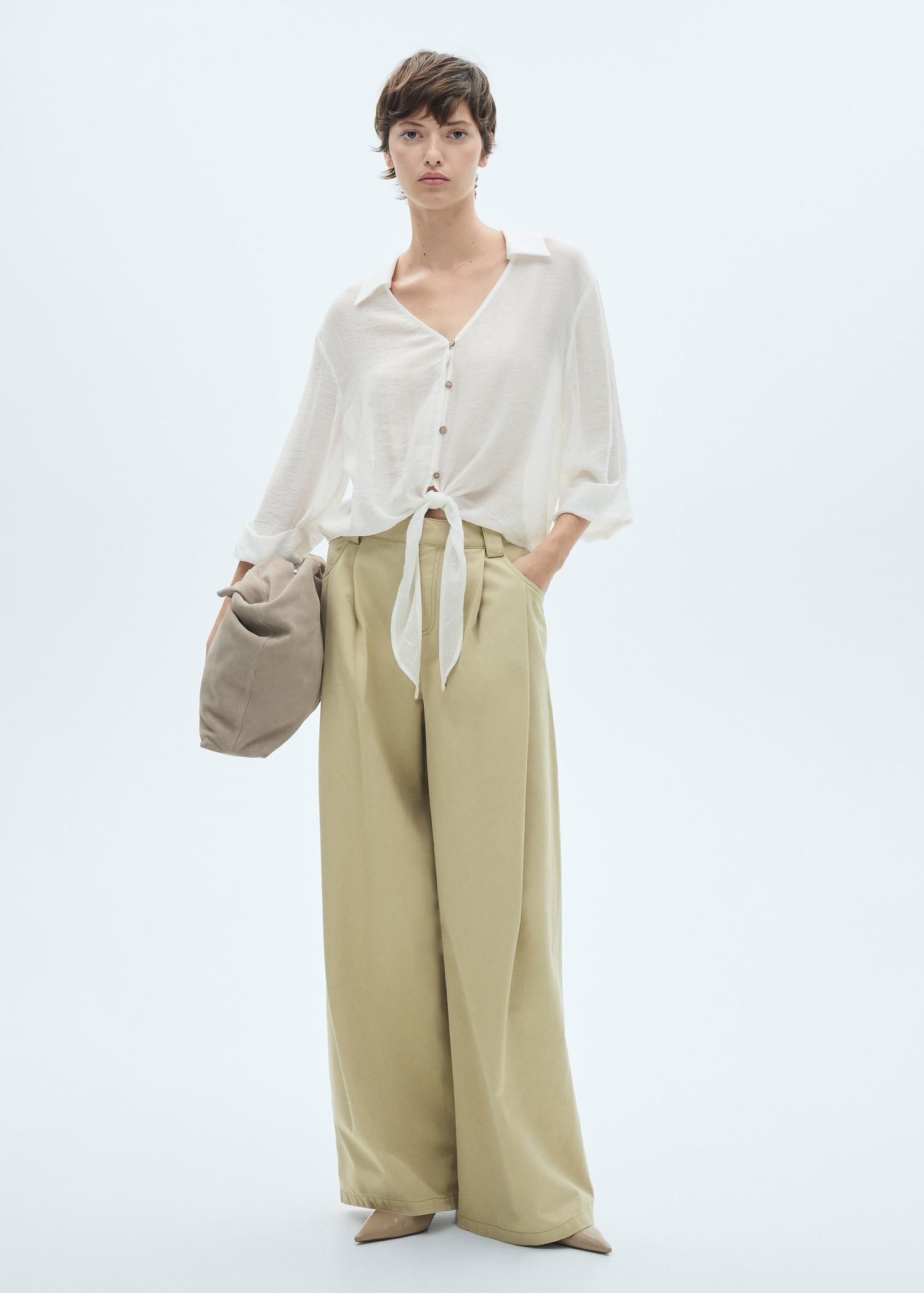 Linen-blend top with bow - Women | MANGO USA