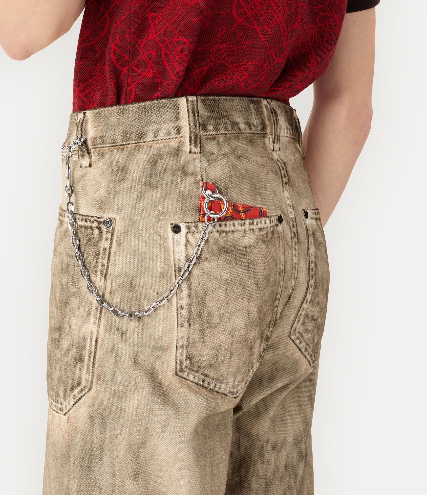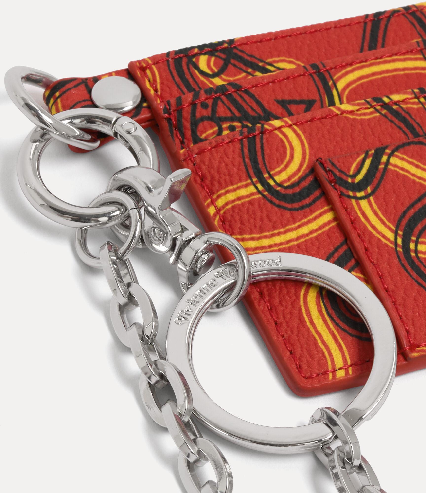 Our signature Flat Chain card holder is reimagined this season in grained PU, finished with a printed motif across the design. Paired with five external card slots and a central compartment, the piece is completed with a polished chain attachment and classic metal hardware detailing.