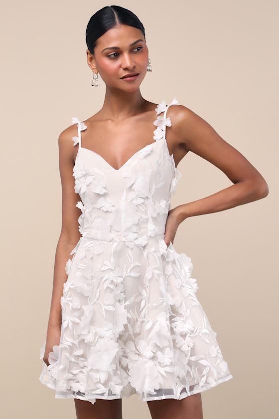 Designed to be the perfect piece for special occasions and everlasting memories, this ELLIATT x Lulus mini dress boasts a sheer mesh overlay adorned with three-dimensional floral appliques and glossy embroidery. Slender straps support the princess-seamed bodice with a flattering V-neckline and a high, fitted waist that tops a twirl-worthy skater skirt. Hidden back zipper/clasp.