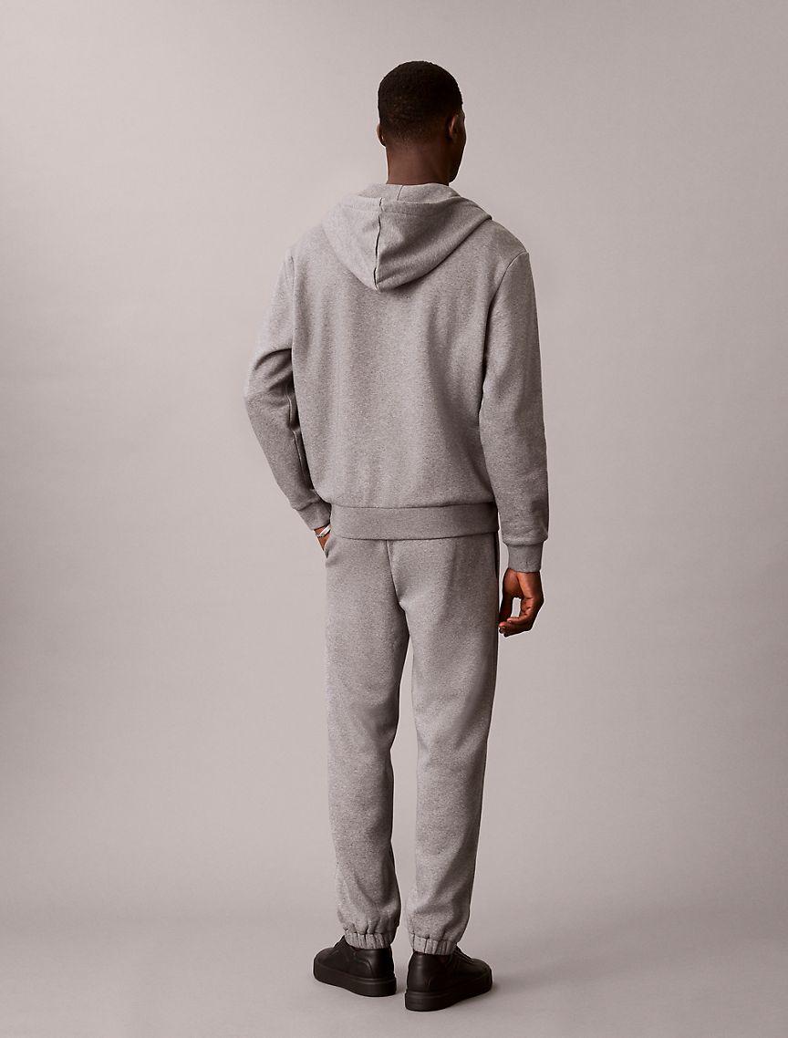 Soft sweatpants made from cotton blend fleece. These sweatpants have a flexible waistband with an adjustable drawstring. Printed with a layered monogram graphic at the upper leg.