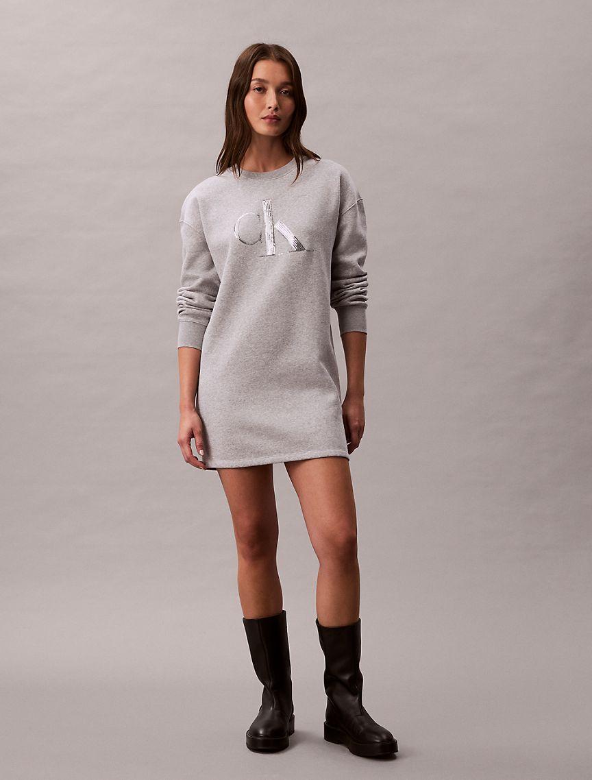 Fleece Sequin Monogram Mini Sweatshirt Dress
