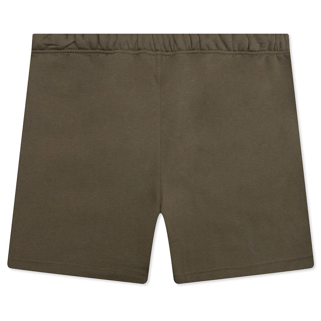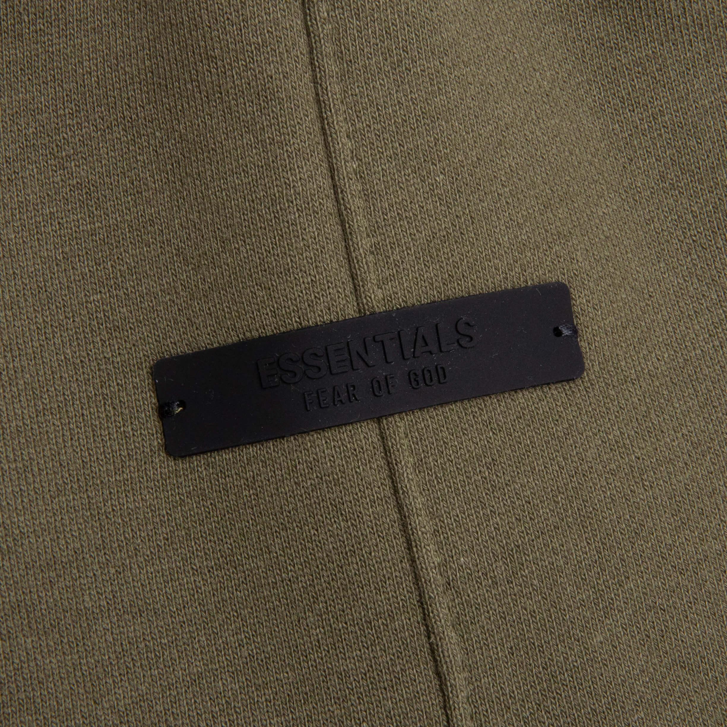 The Essentials Fleece Soccer Short is updated in a heavy 480gsm core fleece to provide additional body and structure. The "Fear of God Essentials" collegiate logo is screen printed on the thigh. Additional details include an encased elastic waistband with elongated drawstrings, and side seam pockets. The Essentials Fear of God rubberized label is at the center front to complete the look. ALL SALES ARE FINAL. 80% Cotton/20% Polyester fleece Essentials fit - Relaxed leg and seat Screen-printed branding Elasticated waistband Extended drawstring Side-seam pockets Style No: 160BT242005F
