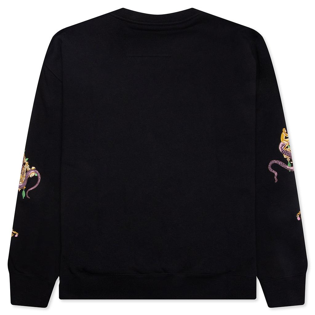 Elevate your casual wardrobe with the Boxy Fit Sweatshirt Base from Givenchy. Crafted from 100% cotton, this long-sleeved sweatshirt offers ultimate comfort with its soft fleece construction. The crew neck design complements the relaxed silhouette, while the GIVENCHY mixed writings embroidered on the chest bring a touch of brand identity. Intricate snake and chandelier embroideries along the sleeves add a bold, artistic flair to the piece. Ribbed details at the collar, hem, and cuffs enhance the classic fit, making this sweatshirt a versatile and stylish addition to your collection. 100% Cotton Fleece Crew enckline Ribbed trims Classic fit Embroidered branding Style No: BMJ0LCGYPW-001