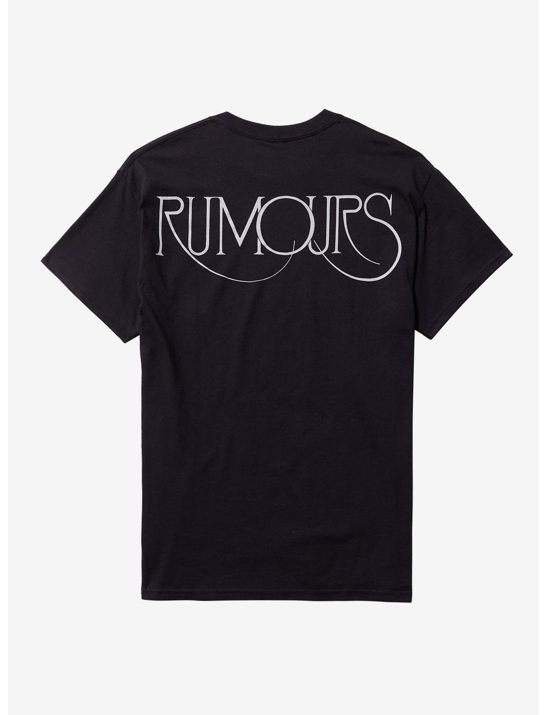 It's been almost 50 years since Rumours (1977), the hottest album of the '70s, dropped. Grab this two-sided jumbo graphic tee showing Mick Fleetwood and Stevie Nicks from the album cover with the band's logo up top on the front. The back shows the album title.100% cottonWash cold; dry lowImportedListed in men's/unisex sizes