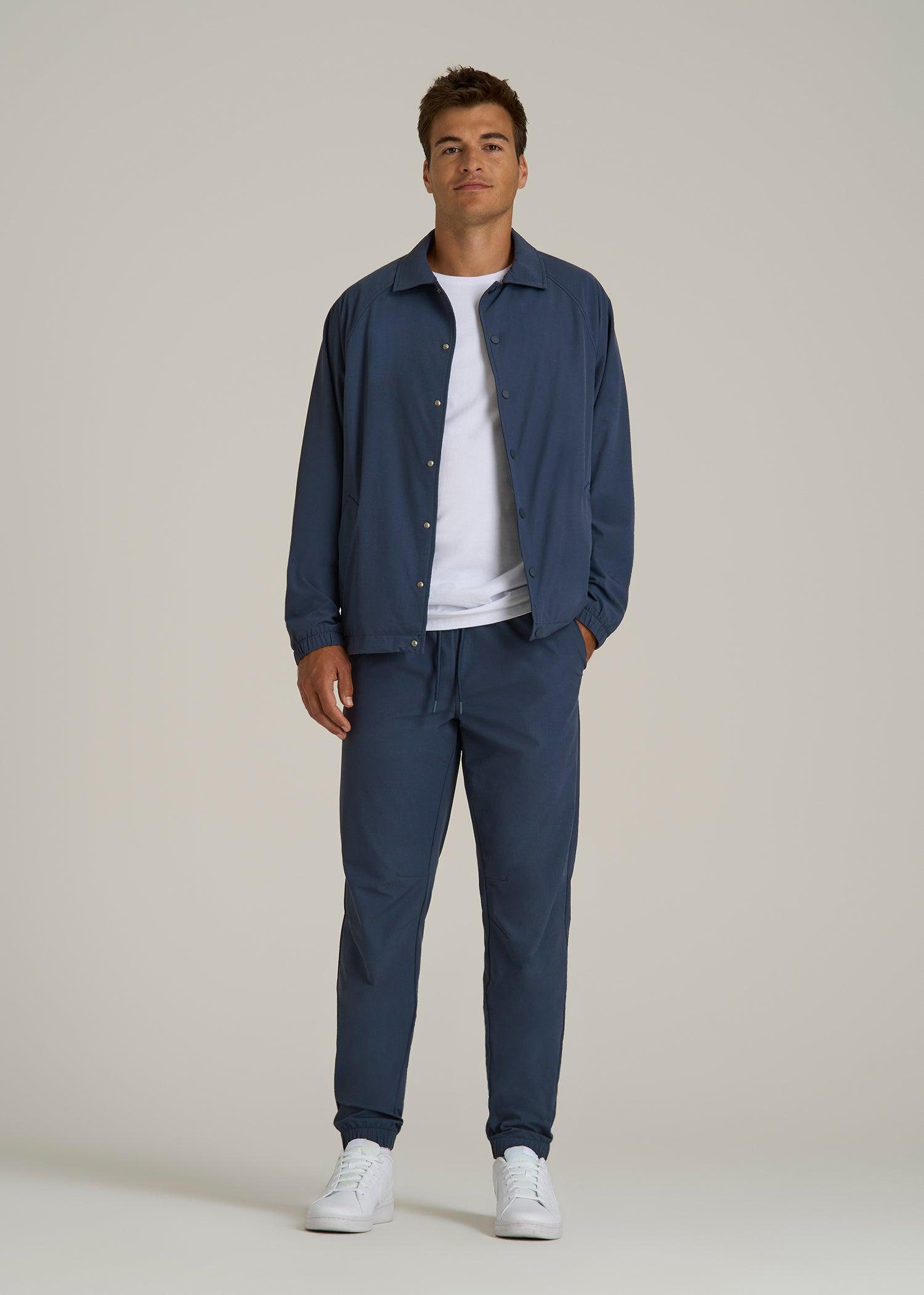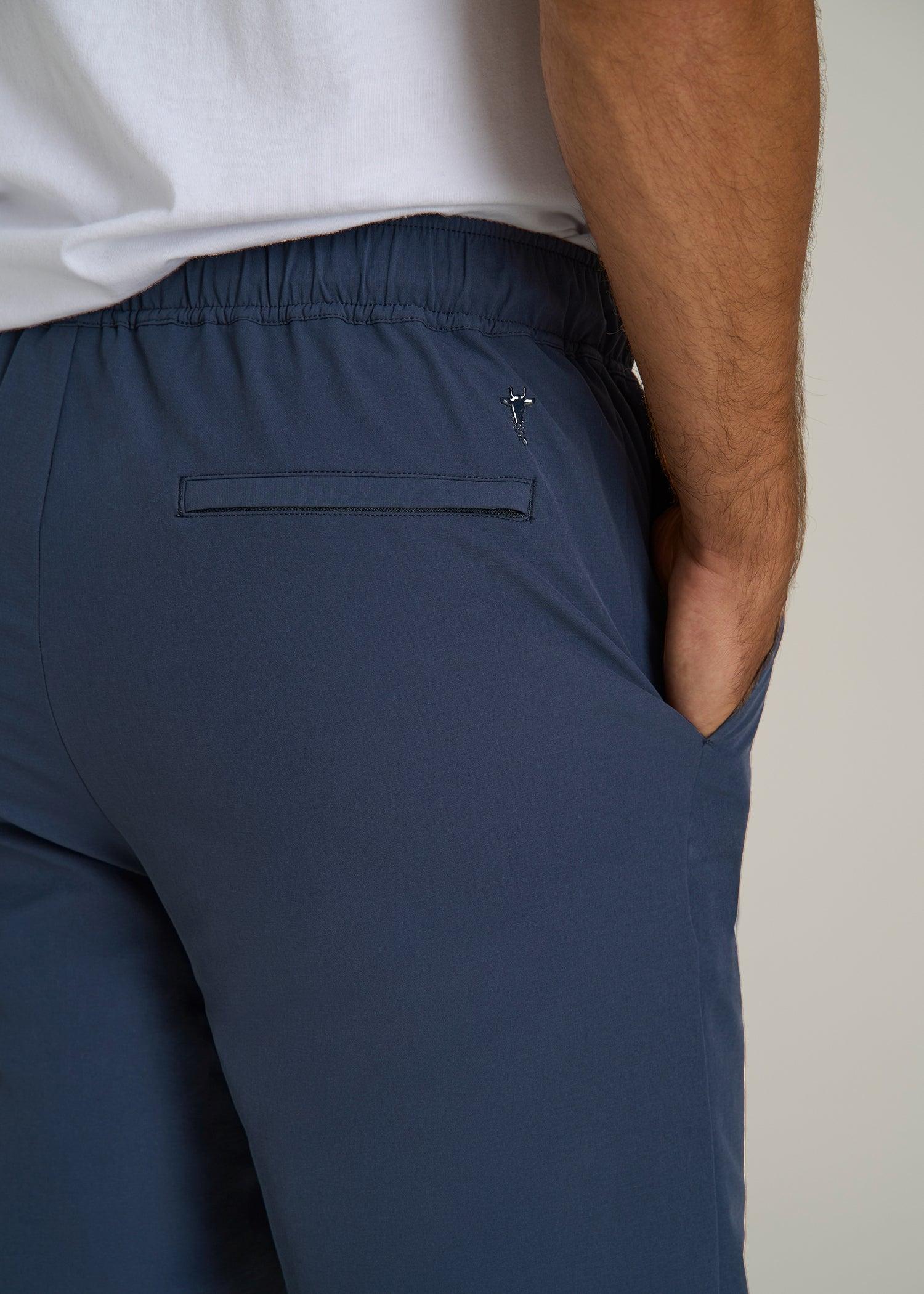 Jog. Jet. Repeat. Athletic Pants for Tall Men Done Right These Flex Nylon Joggers blend 4-way stretch with firm recovery for a fit that stays put, whether you're catching planes or catching Zz's. Their matte finish and moisture wicking technology means going from the gym to the street just got easier. Plus, with a longer inseam, these men's tall active pants let you say goodbye to flood risk.• Elastic waist + drawstring dial the fit• Slash pockets + zip pocket secure tech• Wrinkle-resistant for suitcase living SIZE & FIT: Tall Inseam: 35" Extra Tall Inseam: 37" Regular through thigh, tapered ankle Mid rise hugs hips comfortably Full-length inseam built tall Model is 6'5" wearing size M Tall FABRIC & CARE: 88% nylon, 12% spandex Machine wash cold with like colors Do not bleach Tumble dry low Low heat iron
