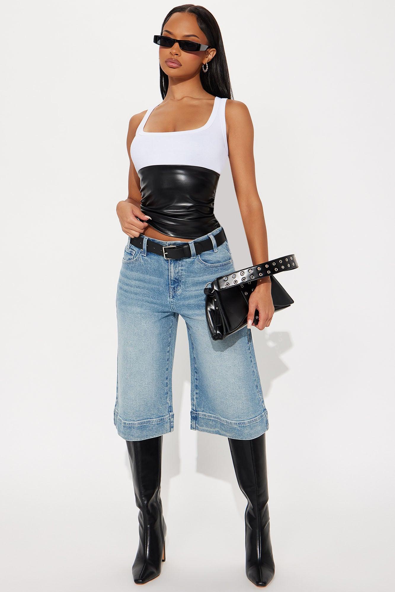 Flirt Fest Faux Leather Tank Top - White/Black Female