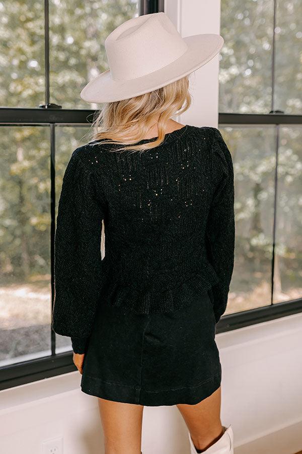 - This darling top is full of sweet details! Adorable bows and ruffles give it a charming twist to keep you looking on-trend. Express your bubbly sense of style with this super-cute piece. - Unlined pointelle knit material - A scoop cut neckline - Long, loose sleeves with ribbed cuffs - Three cream colored accent bows on the front - A flattering silhouette that ends in a ruffled hemline