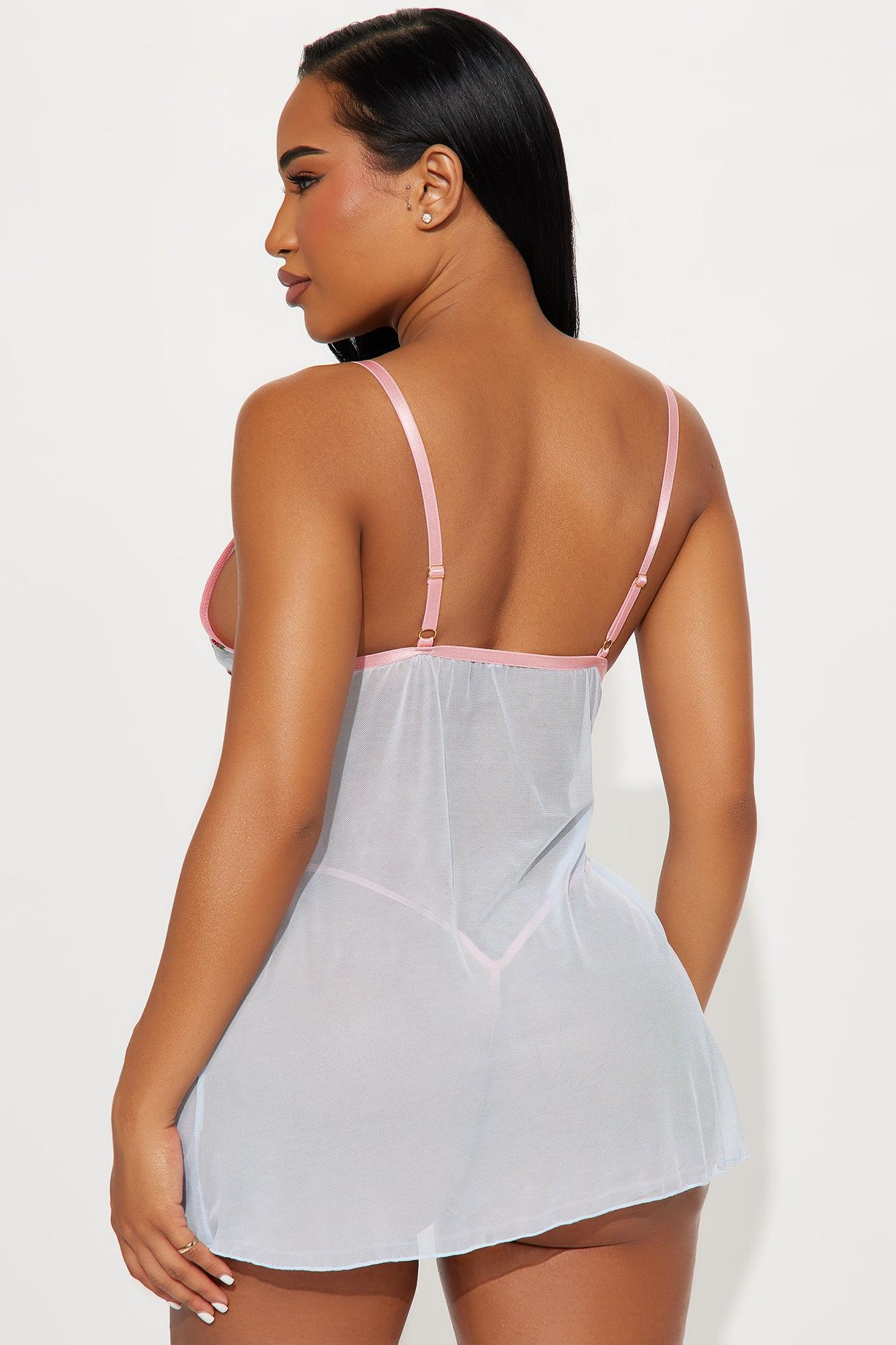 Available In Blue/combo. Mesh Babydoll Strawberry Embroidered Print Lace Trim Bow Detail Matching Thong Final Sale Disclaimer: Embroidery Placement Will Vary 90% Polyester 10% Elastane Imported