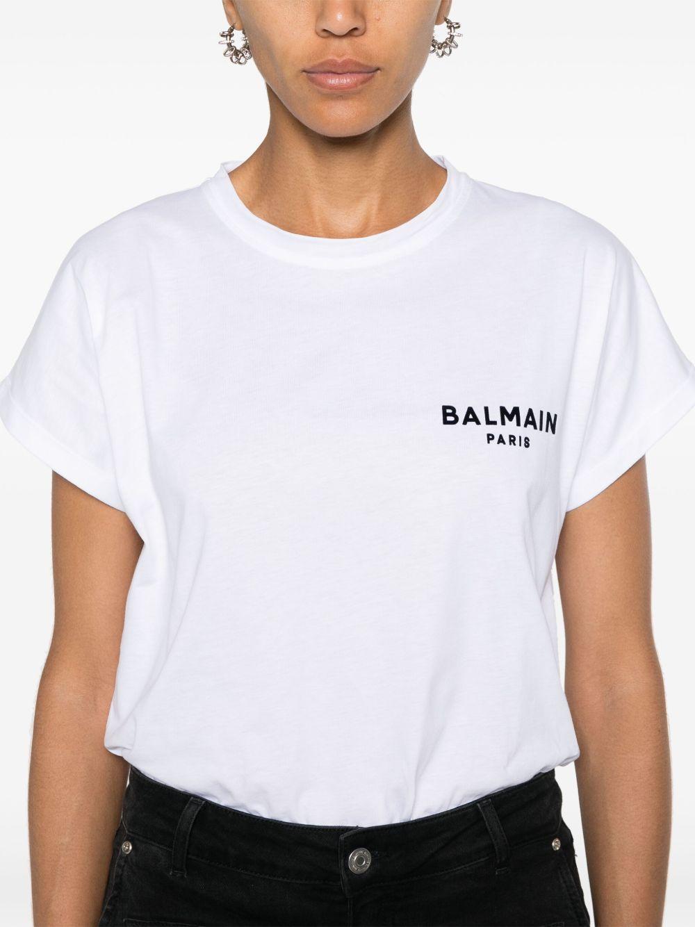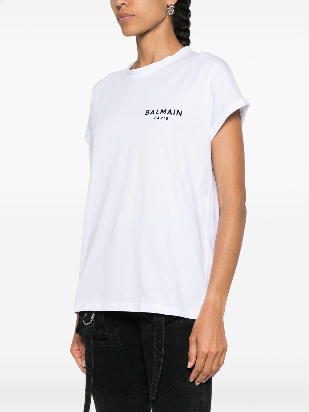 Balmain flocked-logo cotton T-shirt | White | Cotton | T-Shirts & Jersey Shirts | Tops | Clothing | Women
