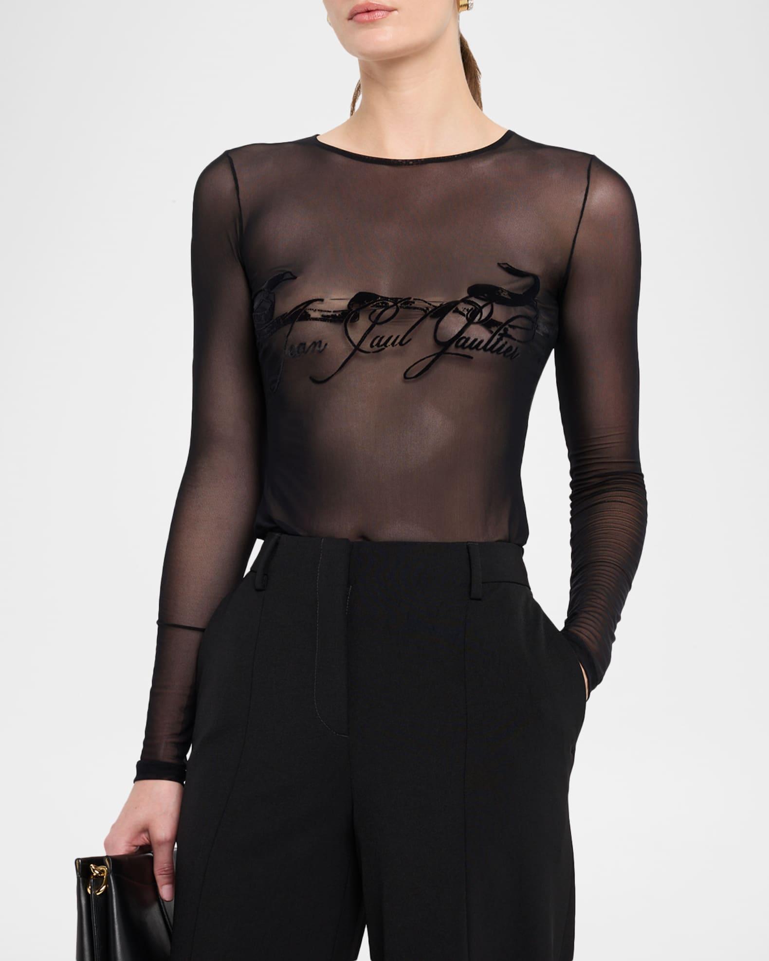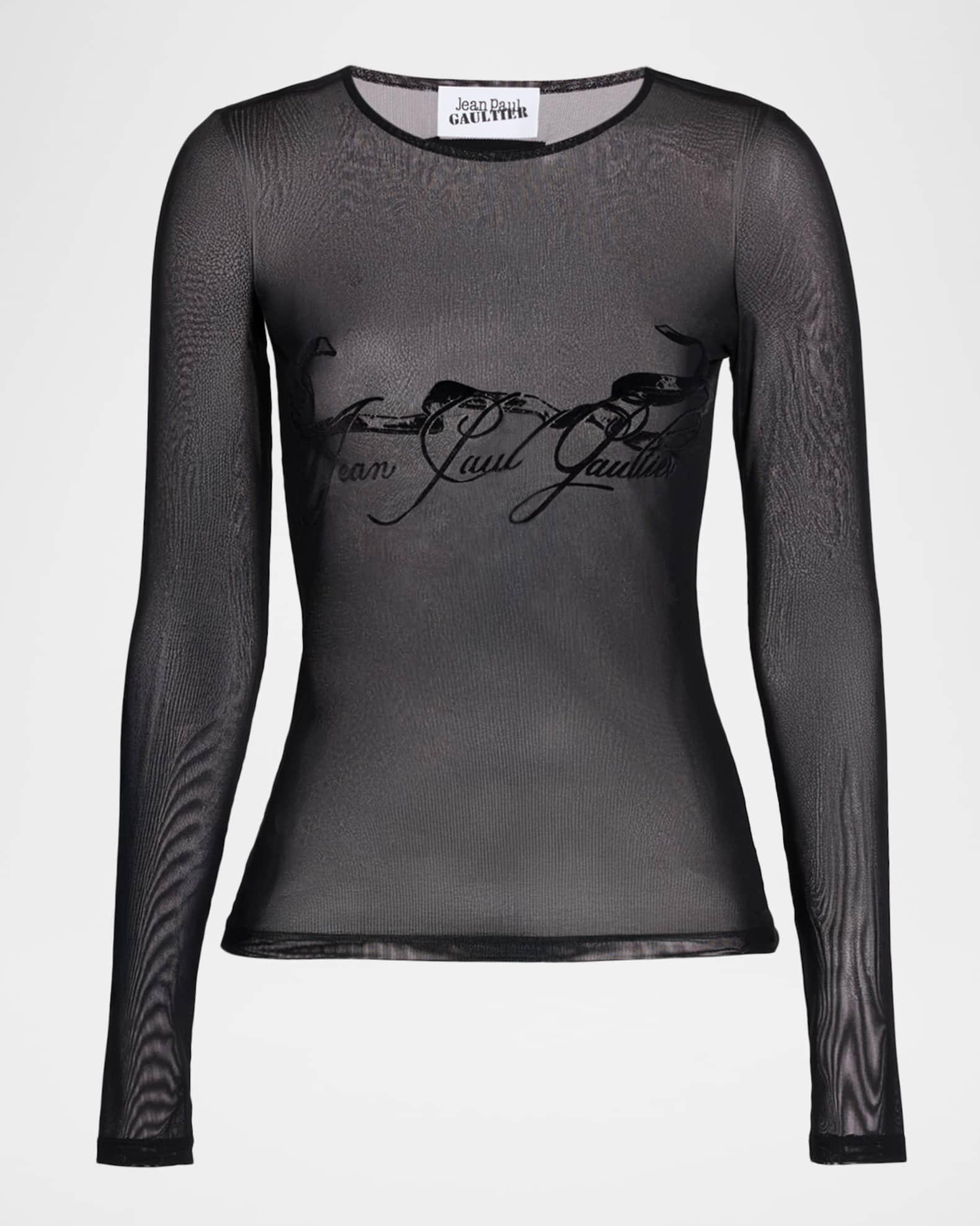 Flocked Tattoo Logo Mesh Long-Sleeve Top