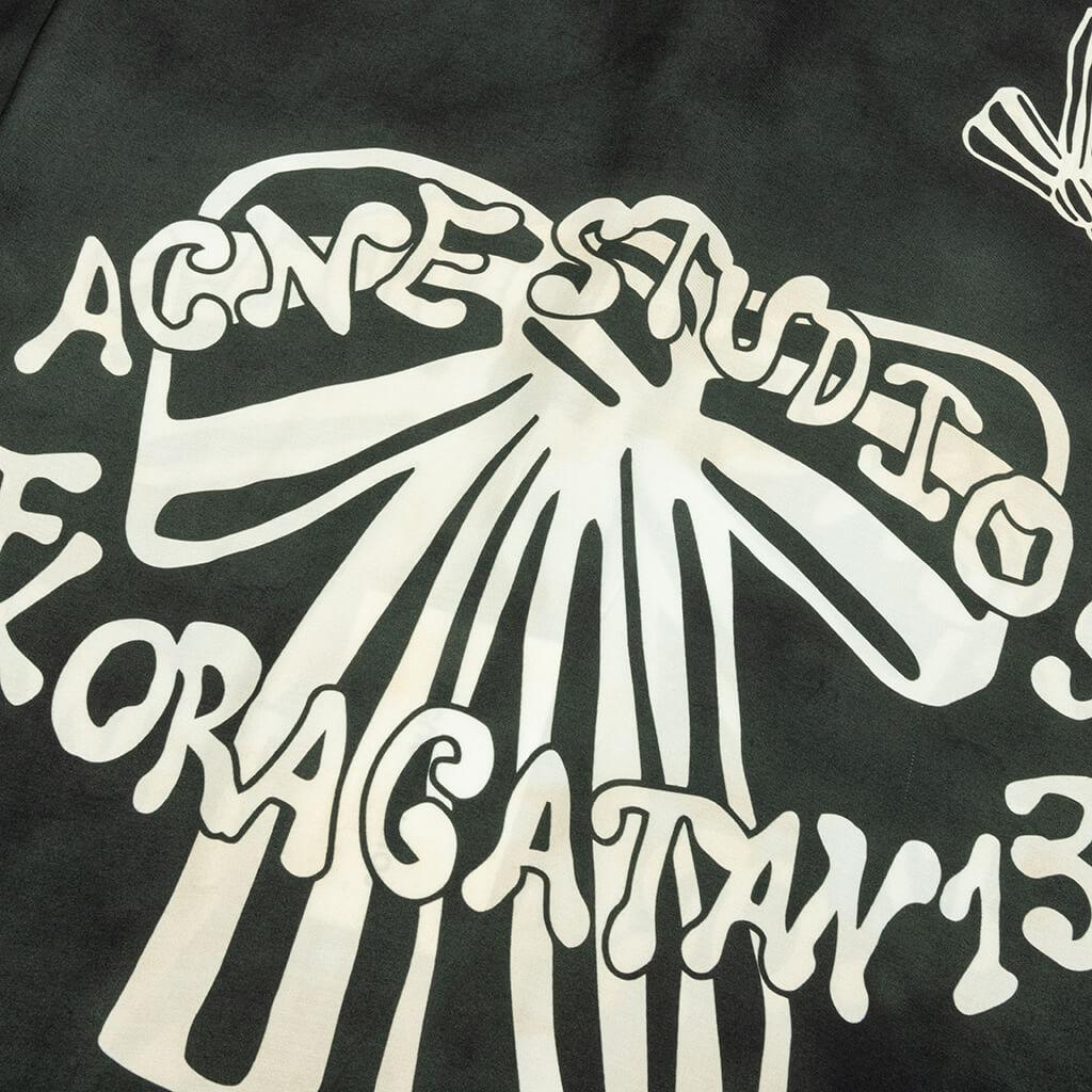 The Acne Studios Floragatan 13 Button-Up Shirt features vibrant graphics on the front and back, crafted from durable polyester for a sleek finish. With its oversized fit and button-down closure, this shirt combines bold design with contemporary style. Graphics on the front and bac Made from polyester Button-down closure Oversized fit Style no: BB0602-J83