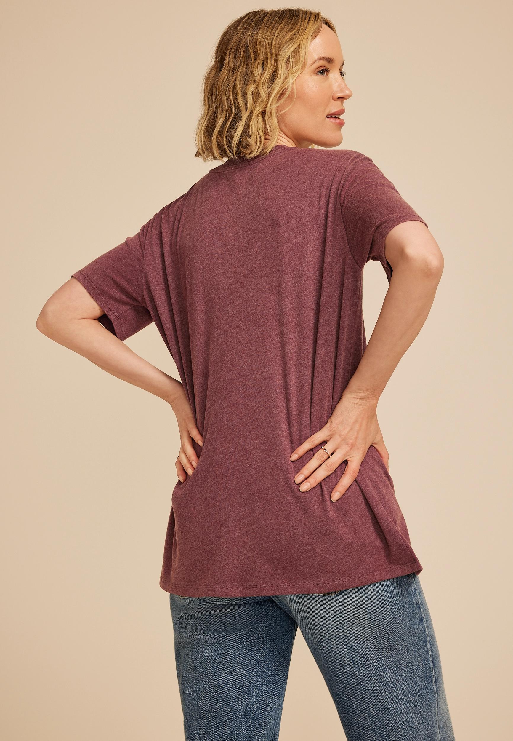Extra relaxed and trend-right for cool gals and comfort lovers alike. .mar-pdp-section .mar-product-description {color: #000;}.mar-pdp-section .mar-product-description ul, .mar-pdp-section .mar-product-description ul>li {margin-left: 10px;padding-left: 10px;}.mar-pdp-section .mar-product-description .mar-product-description-content ul li{list-style-type: disc;margin: 0 0 5px;padding-left: 5px;}.mar-pdp-section .mar-product-description p {color: #000;padding: 5px 0;}@media only screen and (max-width: 1023px){.mar-pdp-section .mar-product-description .mar-product-description-content ul li{list-style-type: disc !important;} .mar-pdp-section .mar-product-description .mar-product-description-content .mar-tab-content ul{padding-left: 10px;}.mar-pdp-section .mar-product-description .mar-product-description-content .mar-tab-content {font-weight: 300;}} Features: comfortable fabric easy stretch solid versatile color licensed inchAerosmith inch floral graphic crew neck longer short sleeves relaxed shoulder tunic length straight hem