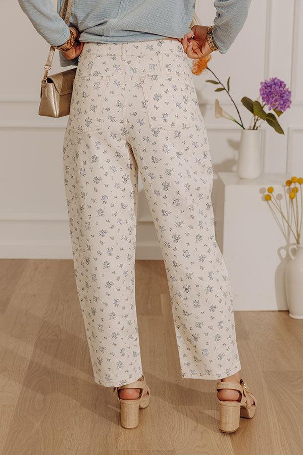 Floral bliss meets everyday denim in this fresh pair. These high-waist jeans feature a petite floral print in soft shades of blue and green, creating a look that feels charming and easy to wear. The clean silhouette lets the print take center stage, keeping the overall vibe cute and versatile. Finished with straight hems, this pair feels timeless yet playful—perfect for adding a subtle floral moment to casual outfits. Details: Non-stretch denim Unlined Petite floral print featuring shades of blue and green High waist Belt loops Hidden zip fly and button closure Functional front and back pockets Straight hems Fit Notes: Straight leg fit