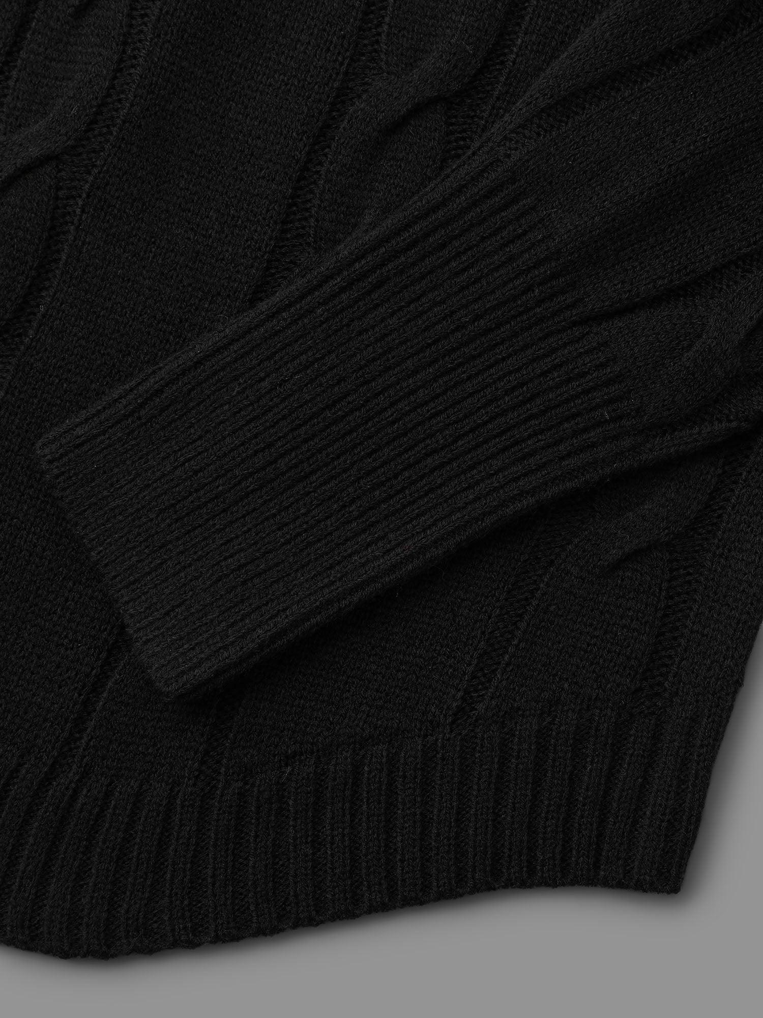 Floral Cable Knit Curved Hem Pullover Female