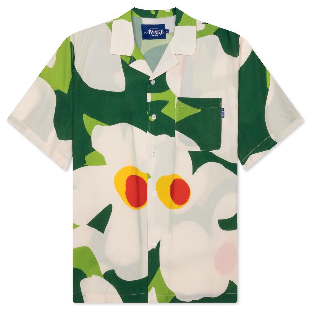 The Awake NY Floral Camp shirt in Grey Multi features a 100% Tencel construction, ensuring a soft and comfortable fit. This shirt comes with a front button closure and a camp collar for a relaxed look. It includes a patch pocket at the chest with the Awake label sewn on, adding a subtle brand touch. Designed for a regular fit, this piece combines casual style with functional design. 100% Tencel fabric Grey Multi color Front button closure Camp collar Chest patch pocket with Awake label Regular fit Style No: AWK-SP24-TP004-GRN