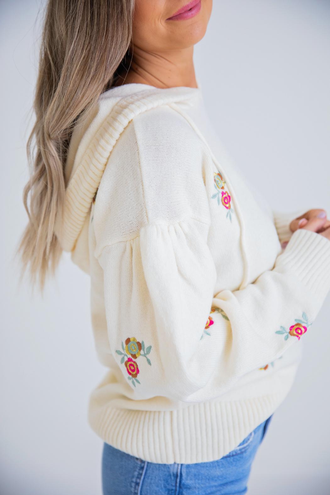 Floral Embroidered Hooded Sweater