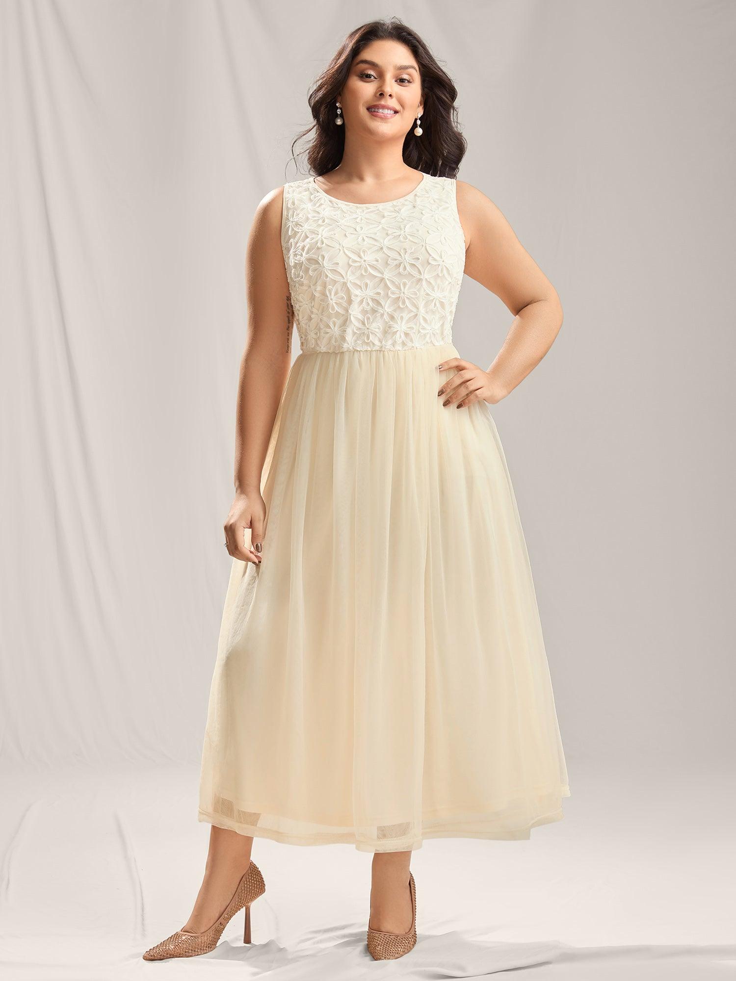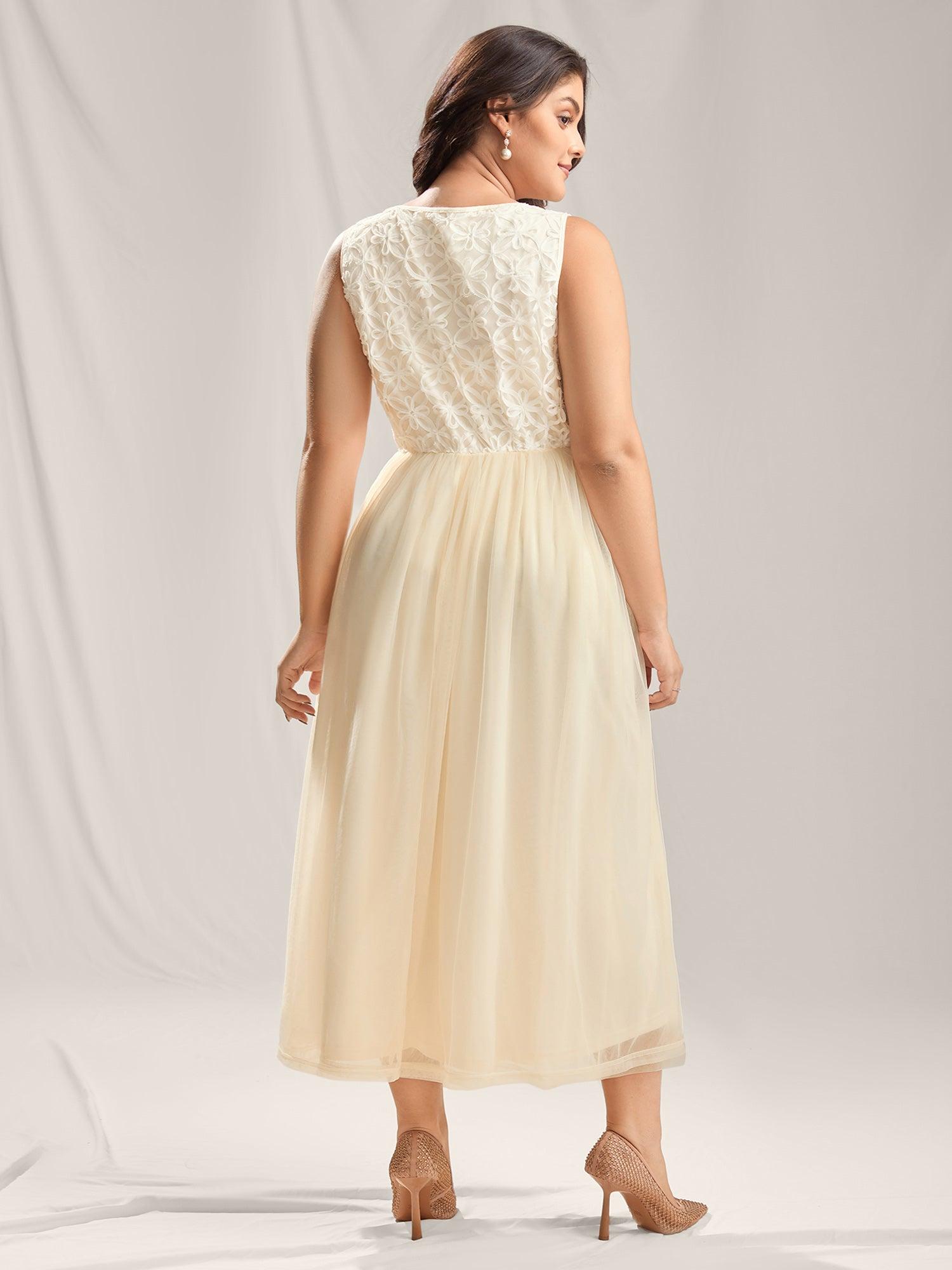 Shop Floral Embroidered Spliced Mesh Maxi Dress now and redefine your style with confidence at BloomChic. Tailored for mid and plus-size women. This trendy Dress, sizes 10-30. You can never go wrong with BloomChic Dresses. Color:Beige;Neckline:Round Neck;Sleeve Type:Sleeveless;Prints:Synthetic texture;Pocket:No-pocket;Belt:No-belt;Closure Type:Non