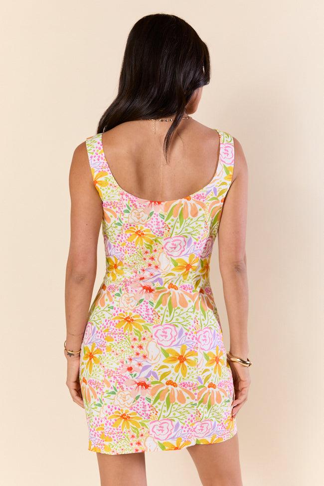 Details Floral Print Square Neck Mini Dress Fabric has no stretch Sleeveless, side zipper closure Lined Size small from shoulder to hem: 32" Material and Care 100% cotton, lining: 100% polyester Machine wash cold, line dry Patterns may vary Materials may have natural variations Colors may vary from different viewing devices.