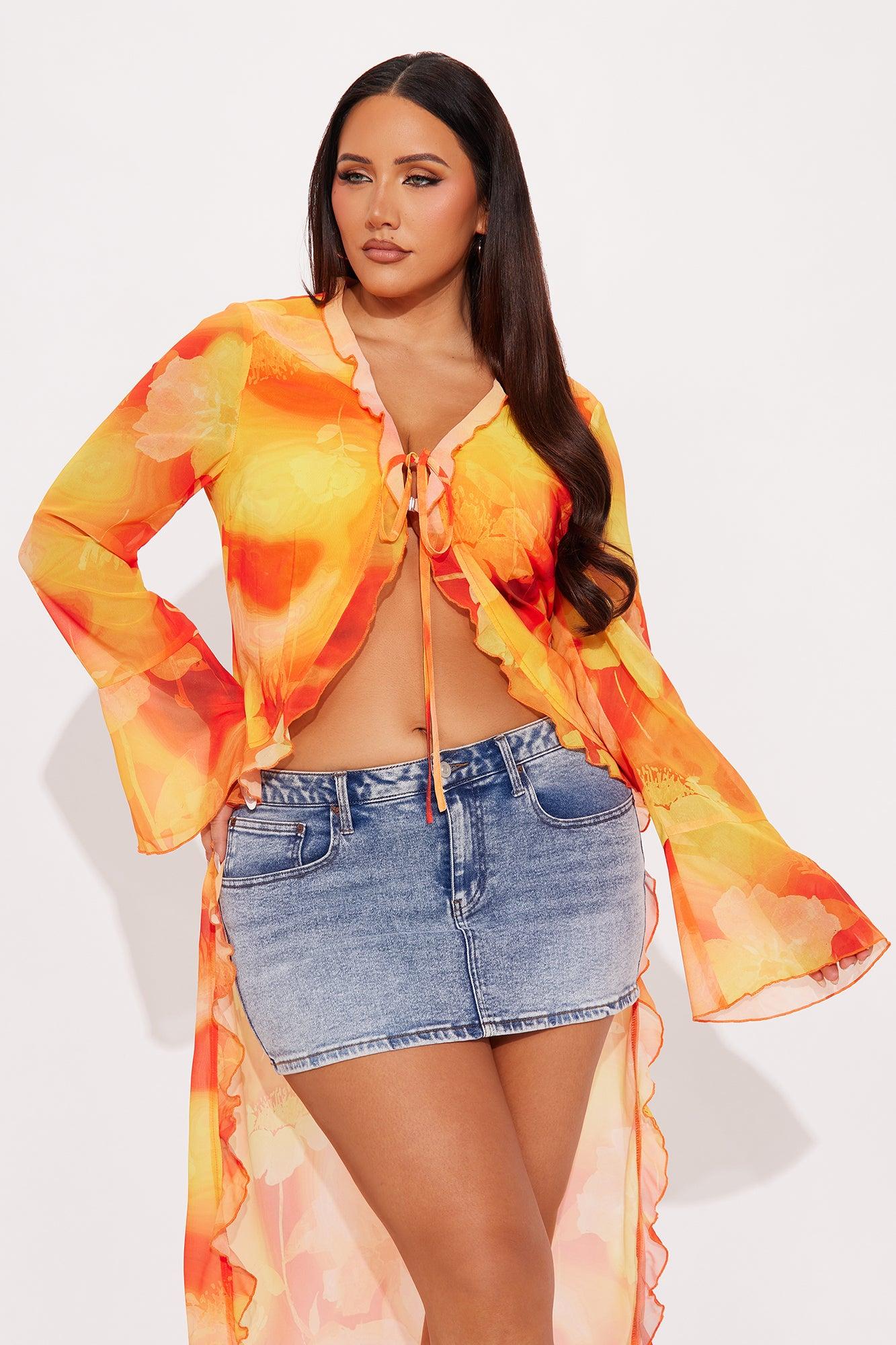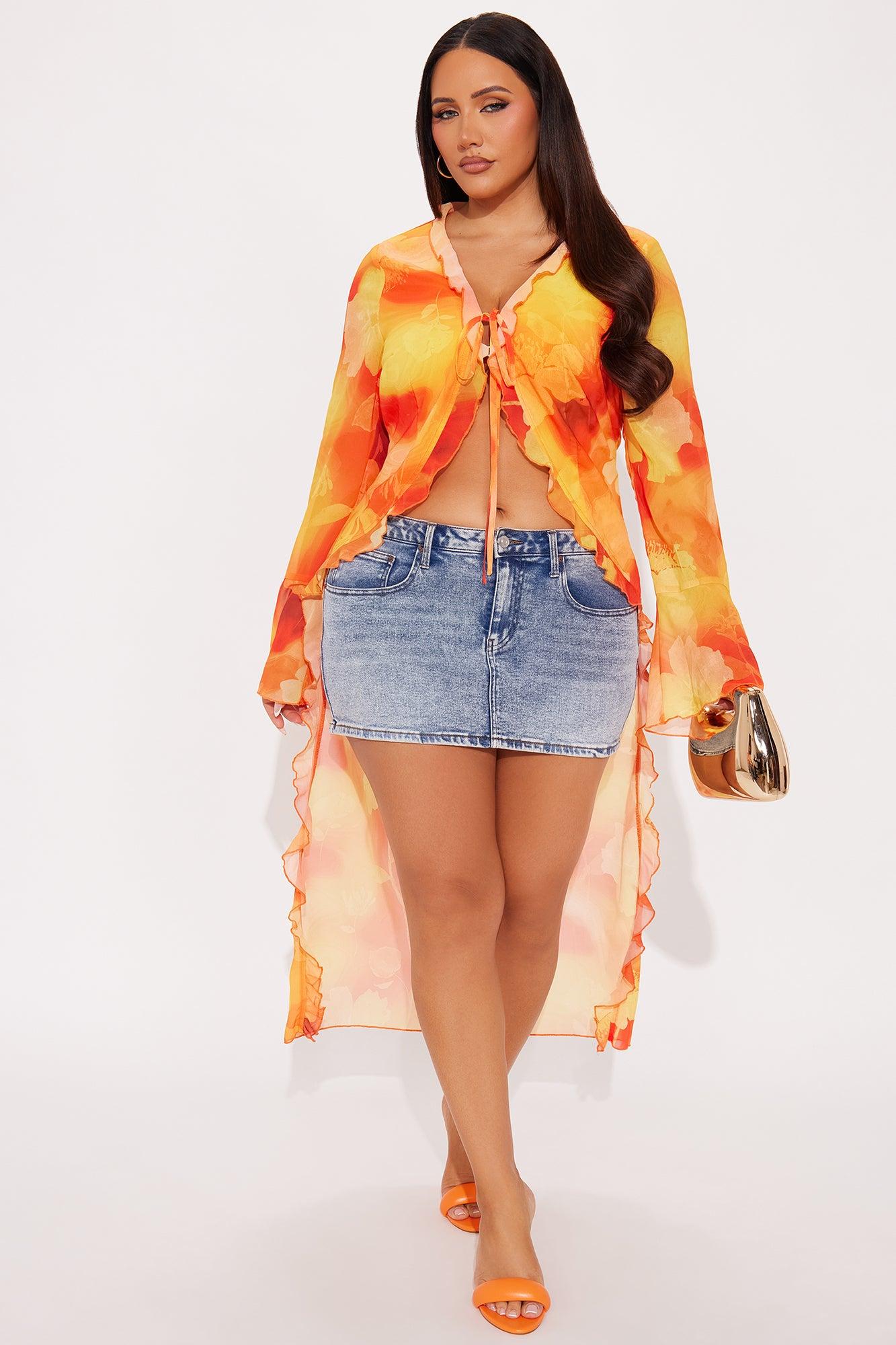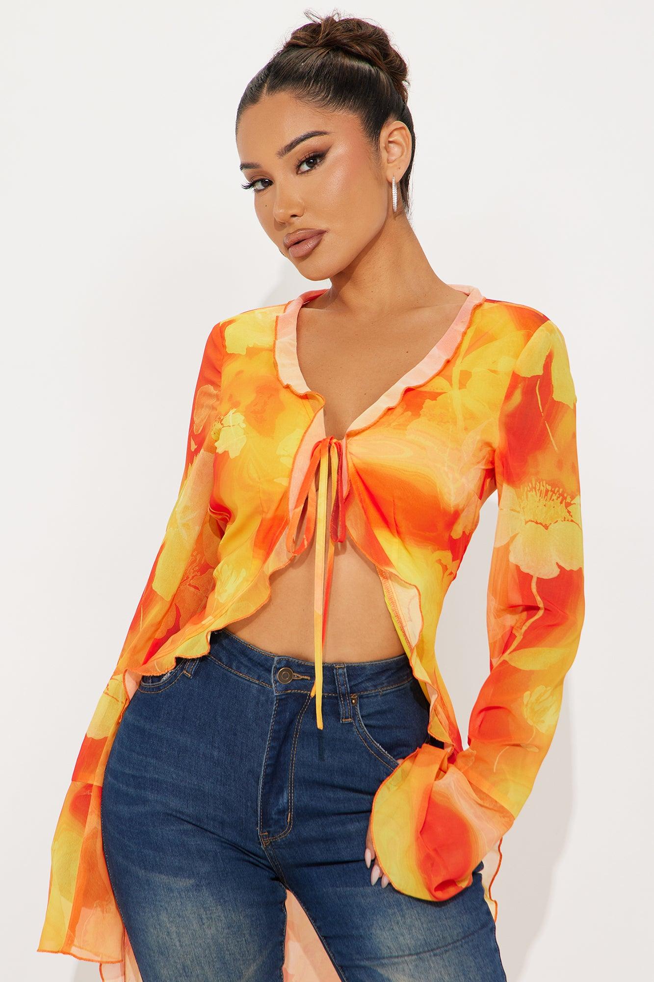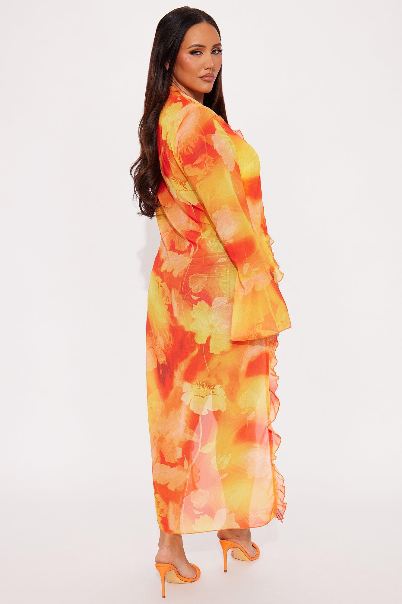 Floral Escape Chiffon Tie Front Maxi Top - Orange/combo