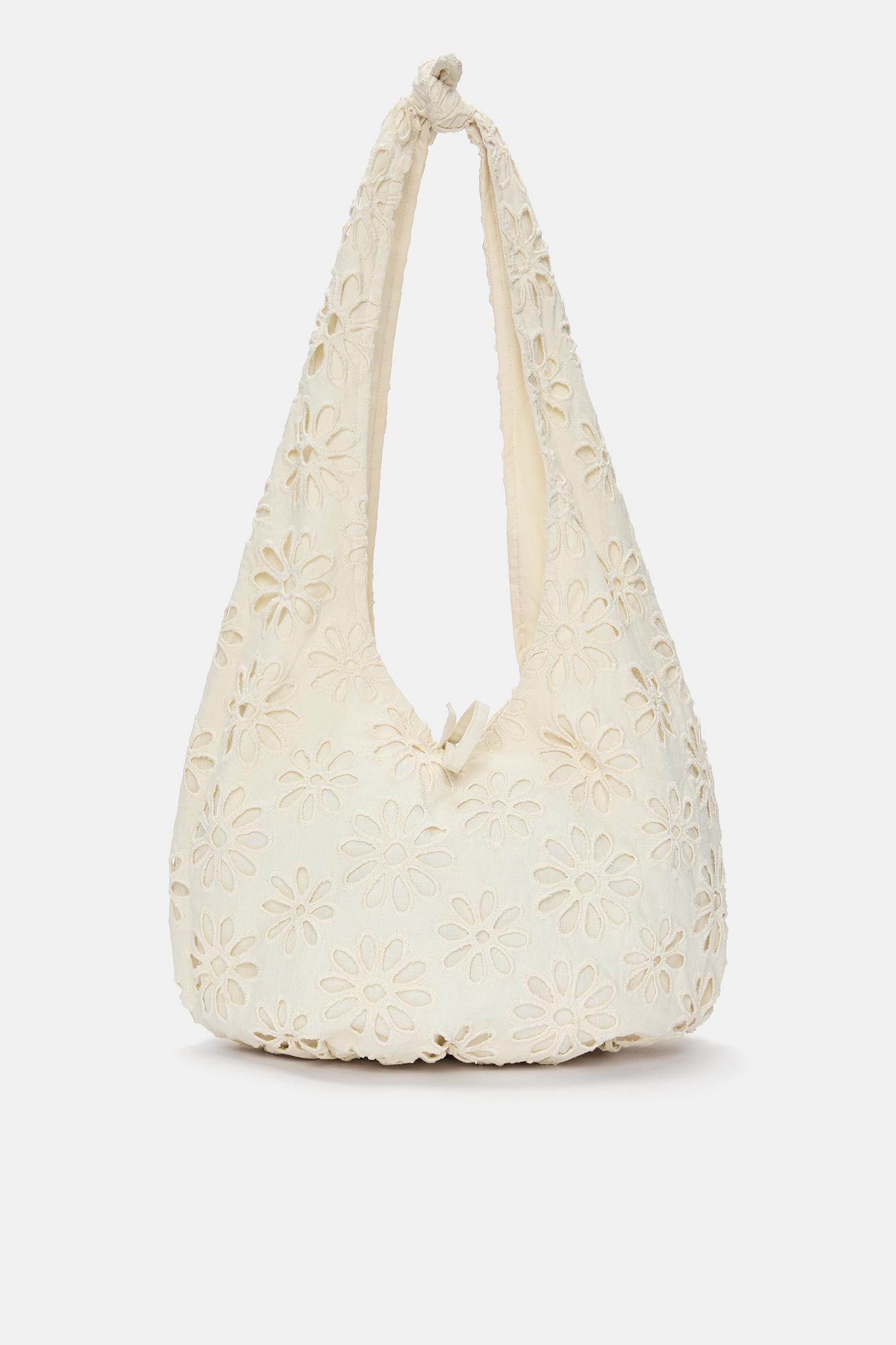 Woven floral shoulder bag