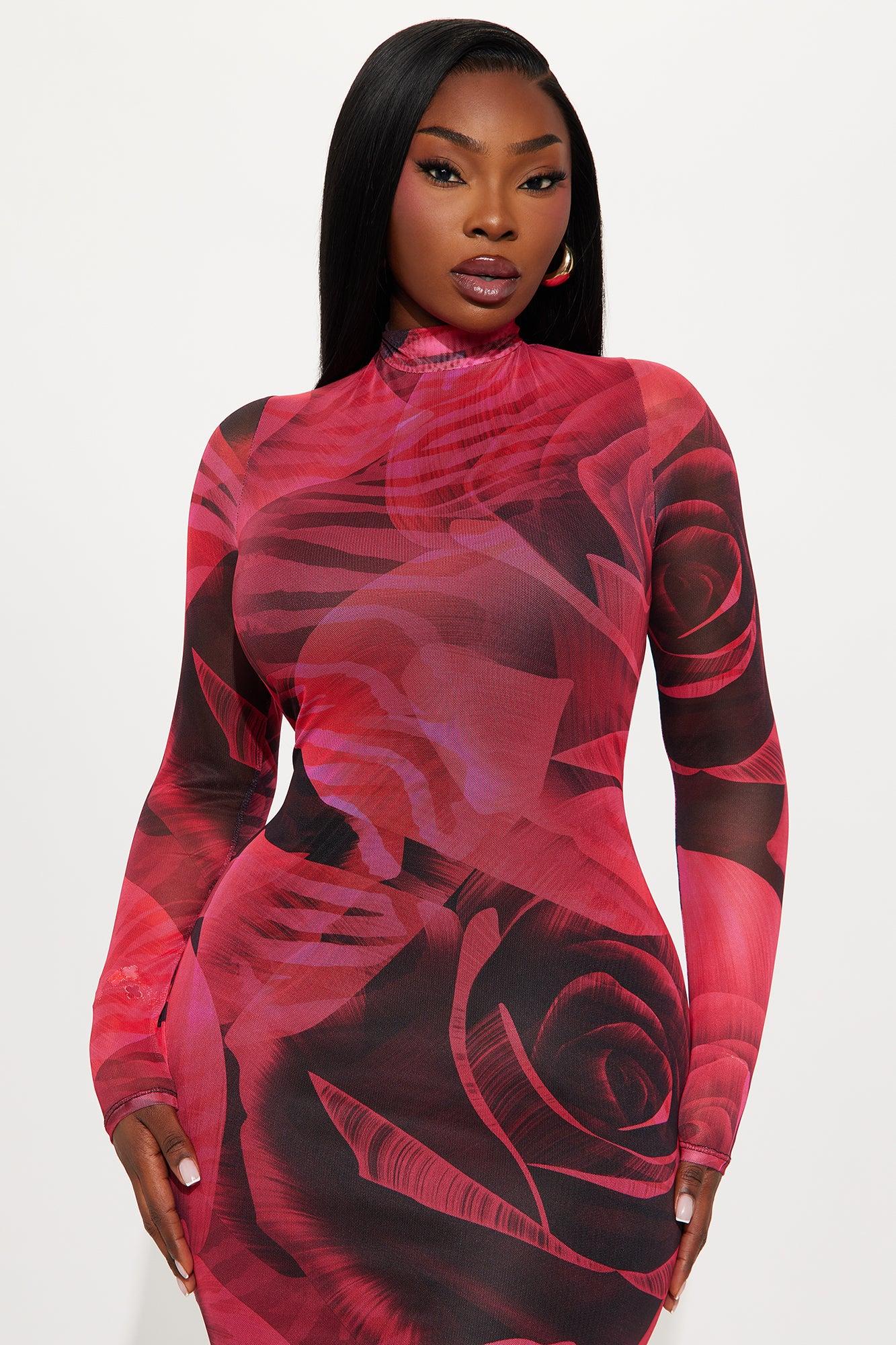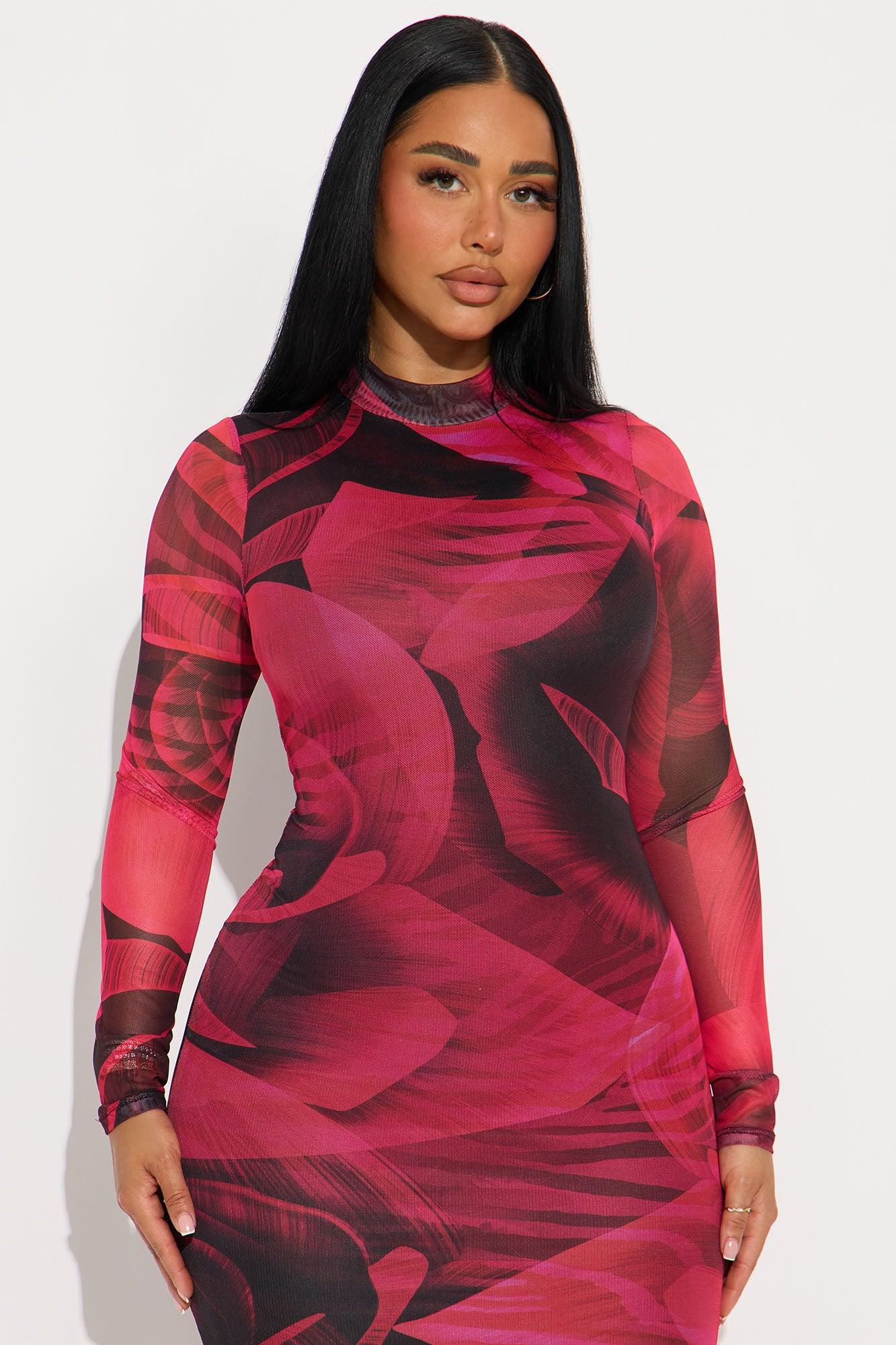 Floral Feelings Mesh Midi Dress - Black/Pink Female