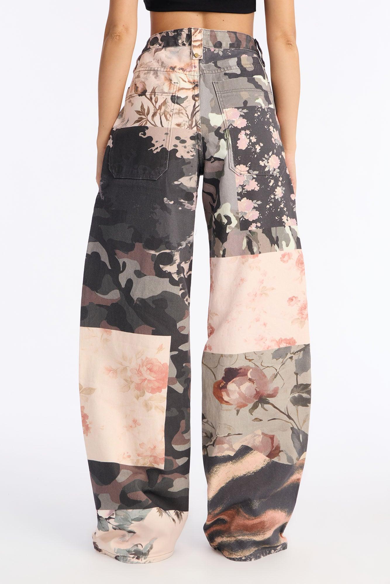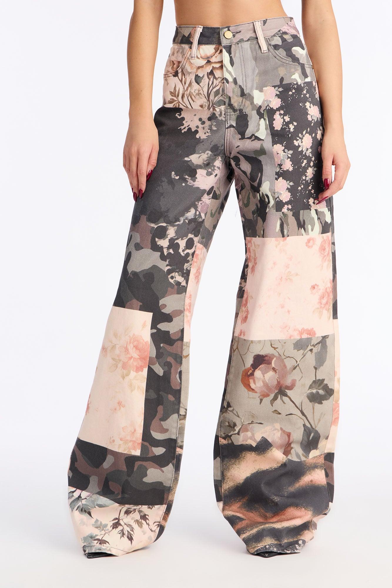 Available In Multi Color. Wide Leg Jean 4 Pocket Floral Print 10.5" Rise 35" Inseam Non Stretch Disclaimer: Print placement may vary. 100% Cotton Imported California Proposition 65WARNING: Cancer and Reproductive Harm - www.P65Warnings.ca.gov.