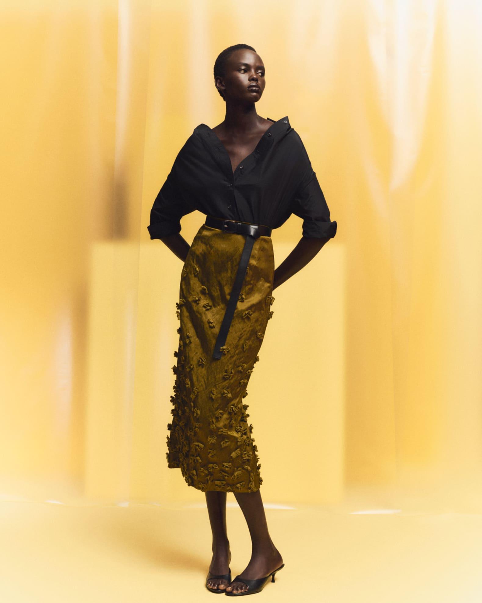 Floral Hand Embroidered Pencil Skirt