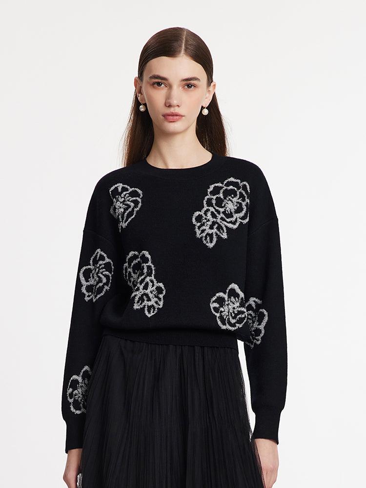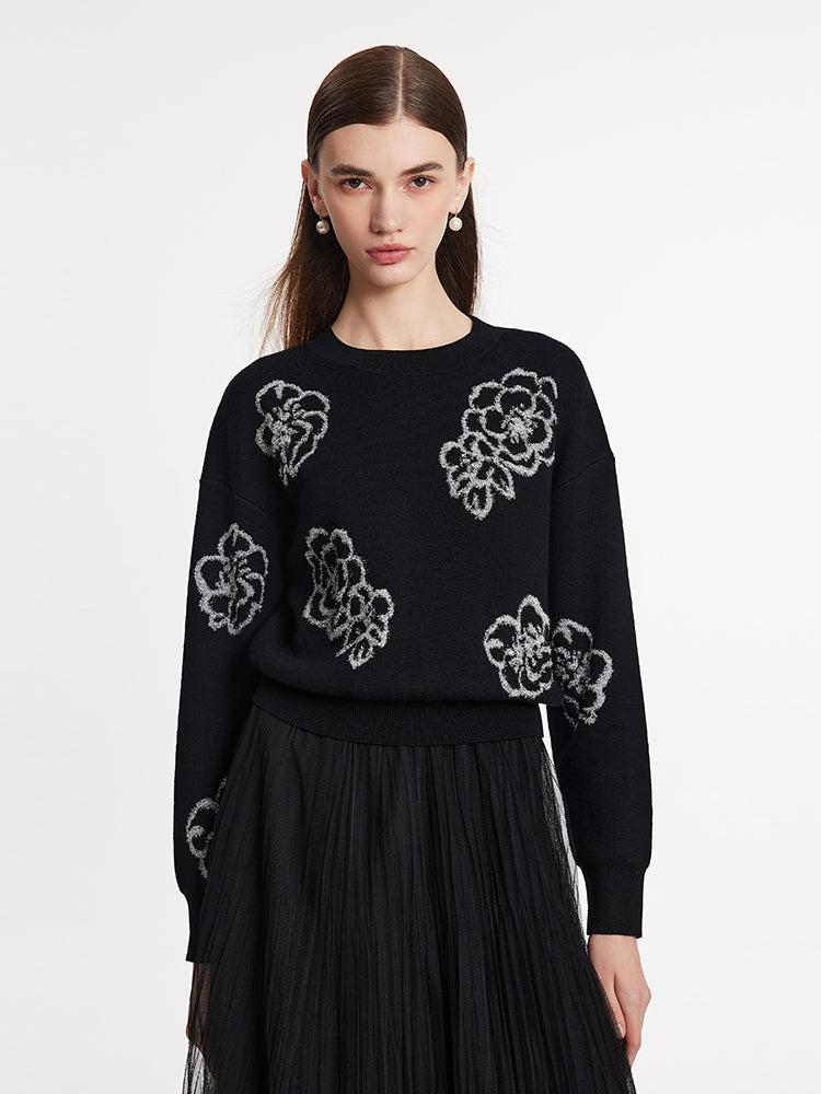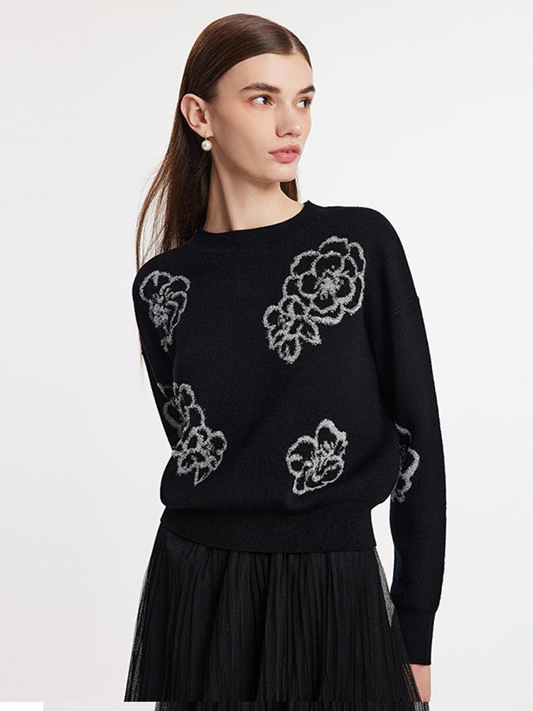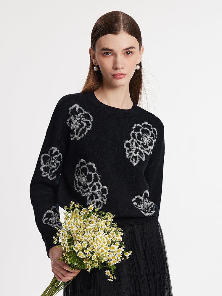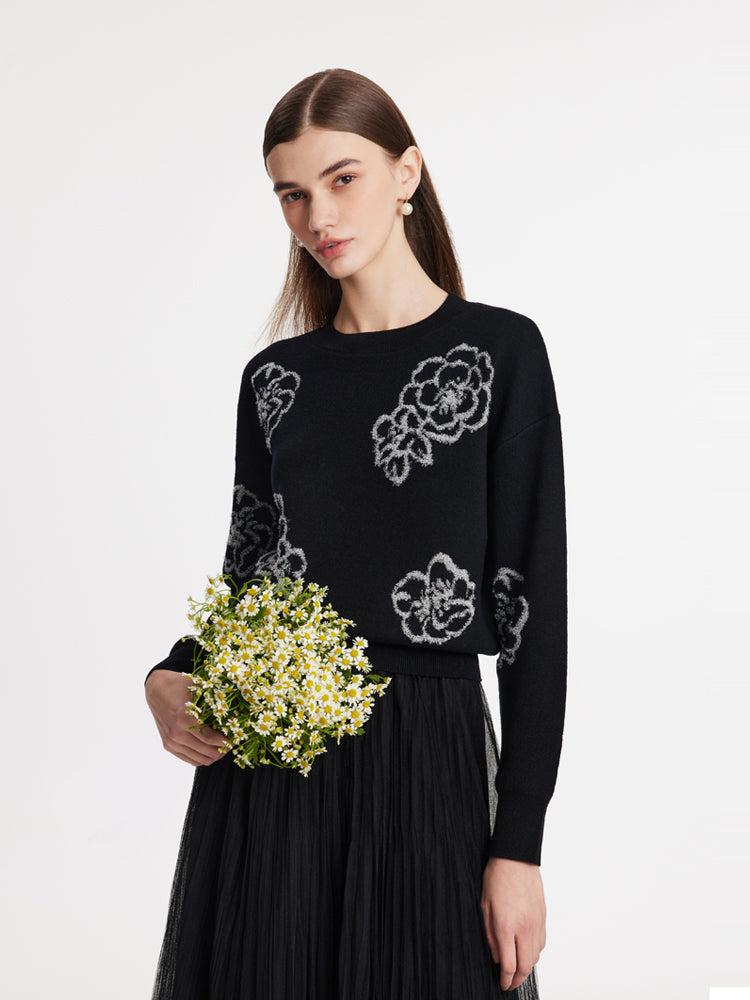 -Soft and comfortable -Casual wear -Round neck The sweater is crafted from wool fabric that promises to keep you warm and cozy. The softness of the wool ensures a comfortable fit that is gentle on the skin, while the intricate floral pattern provides an element of sophistication and charm. It showcases a beautiful flor