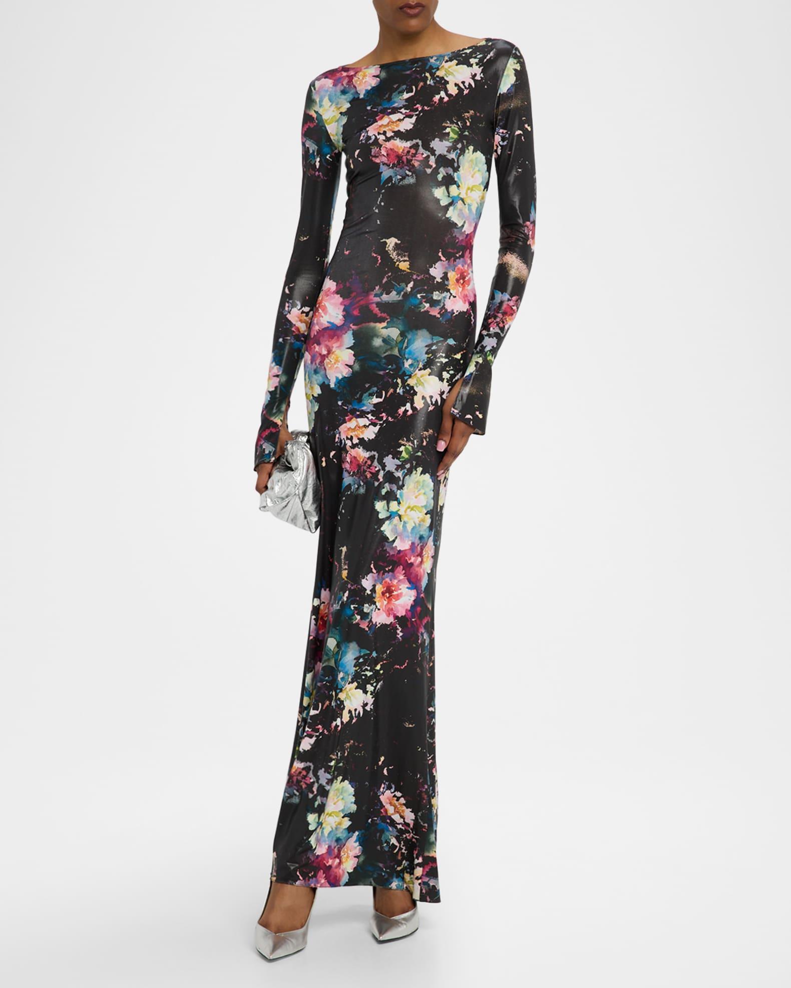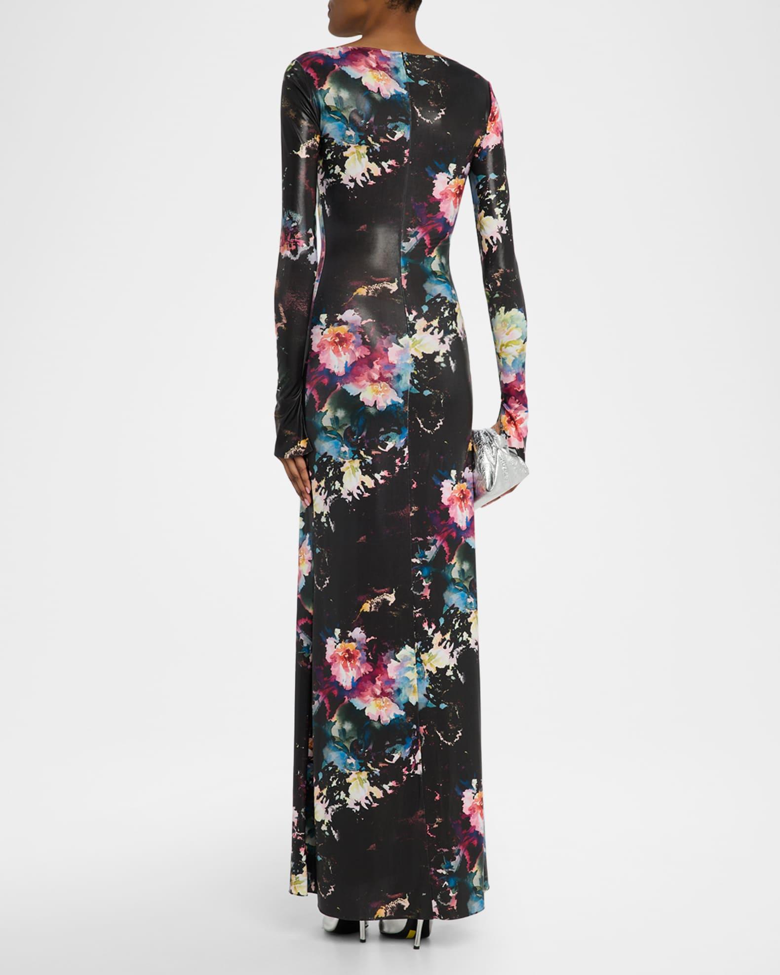 Floral Jersey Long-Sleeve Gown