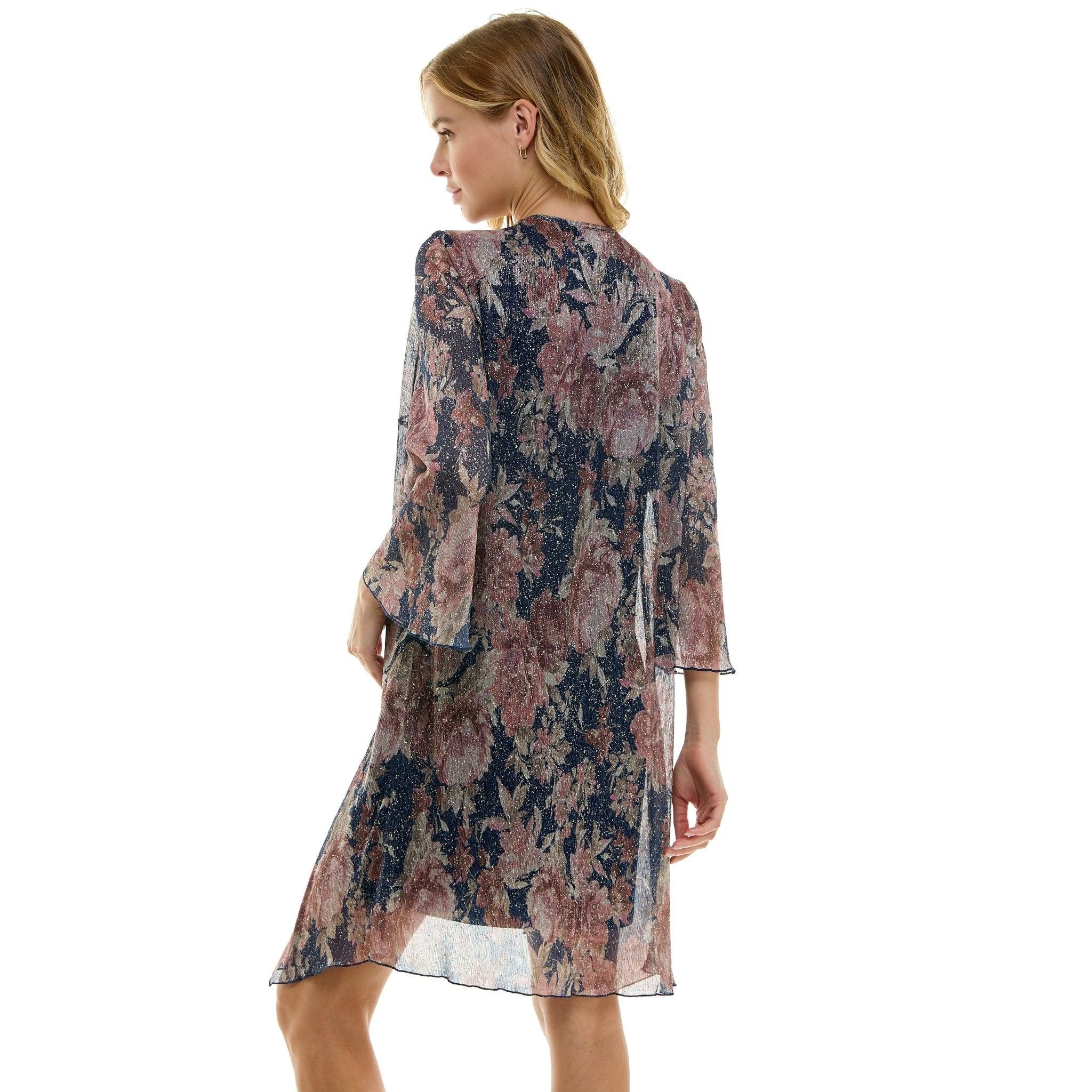 Floral Mini Dress with Detachable Necklace, Navy