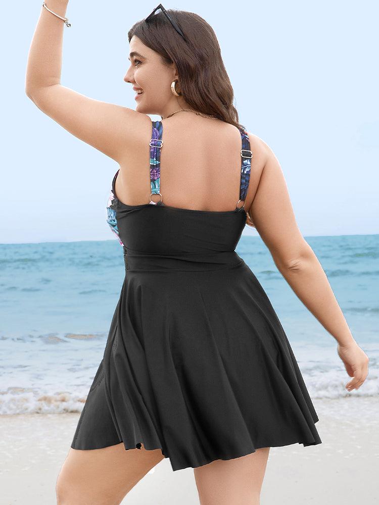 Shop Floral Patchwork Flutter Hem Empire Waist Swim Dress now and redefine your style with confidence at BloomChic. Tailored for mid and plus-size women. This trendy Swimwear Women, sizes 10-30. Season:Summer;Color:Black;Style:Vacation;Bra Type:Wireless;Coverage:Full;Neckline:Spaghetti Strap;Sleeve Type:Sleeveless;Pattern Type:Tropical;Details:Patchwork, Printed, Gathered, Tummy control, A-line, Adjustable Straps;Pocket:No-pocket;Belt:No-belt;Chest pad:Removable Padding;Lining:Lining