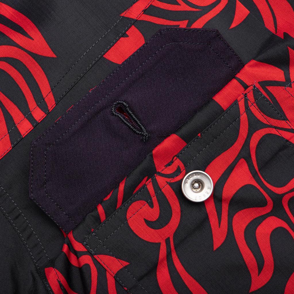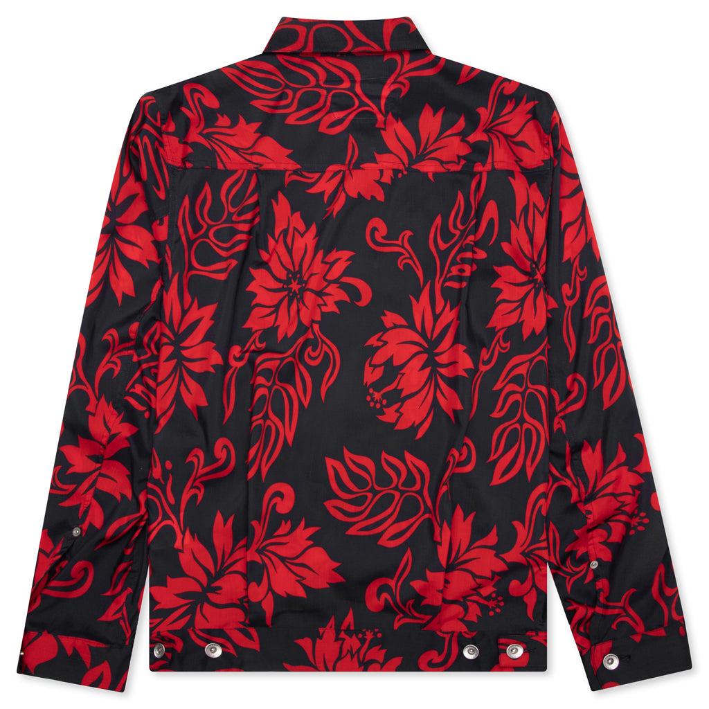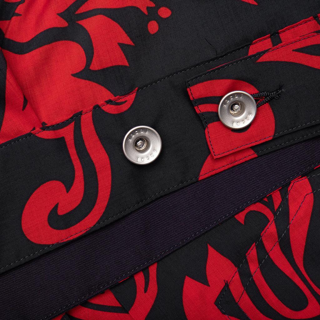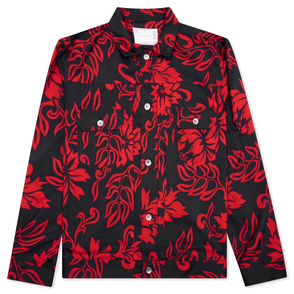 Blending casual and formal, Sacai's Floral Print Blouson is a button down jacket with a lightweight and waterproof material, in an original allover print that elevates any look. Utilizing various fabrications, the pockets and pleats of the jacket breakup the structure. Red voile Button fastenings 100% polyester Patchwork pockets Style No: 24-03289M-751