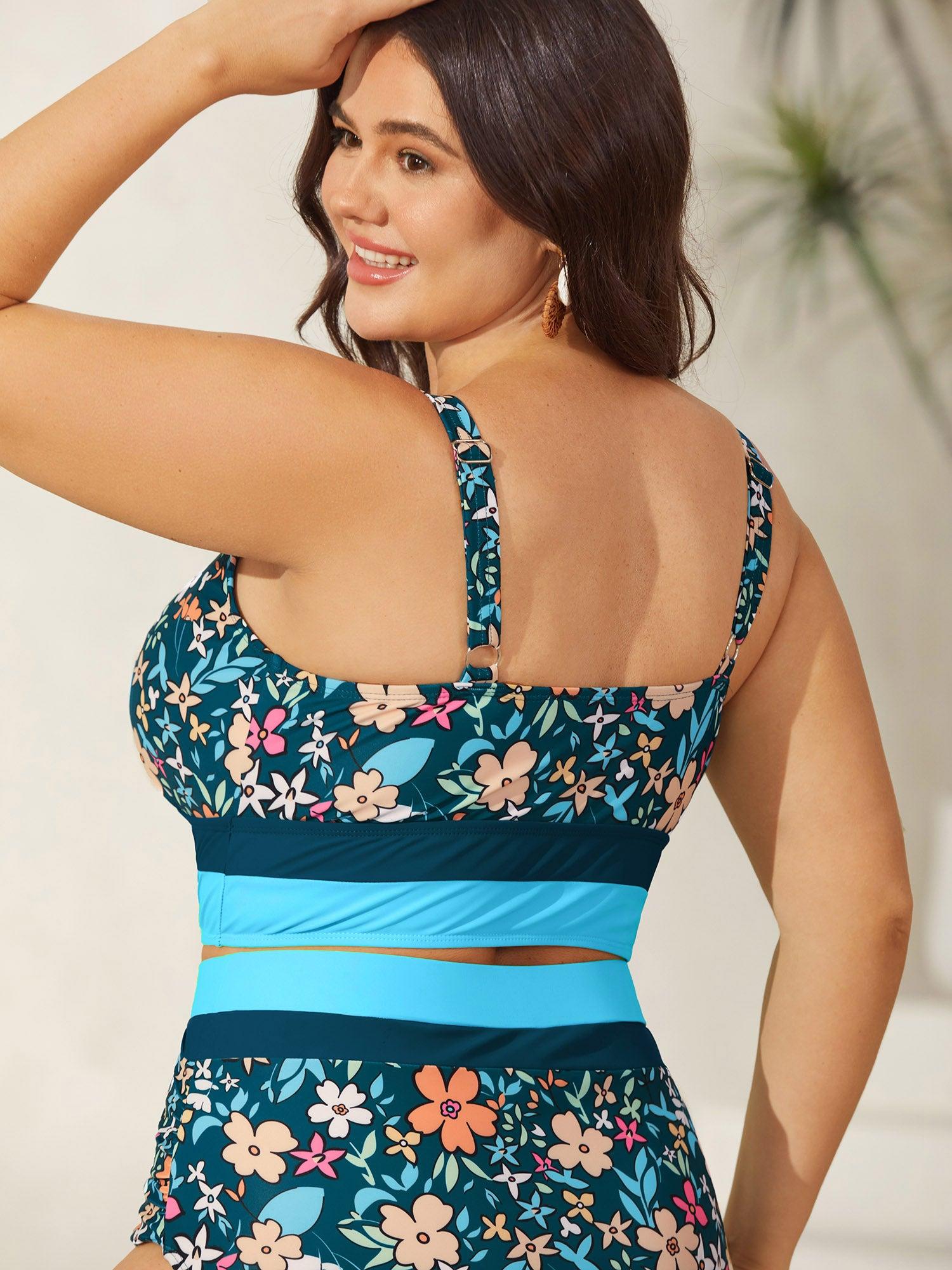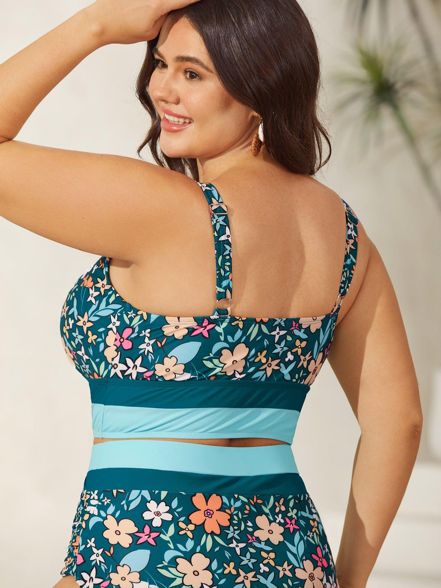 Floral Print Color Contrast Swim Top Female