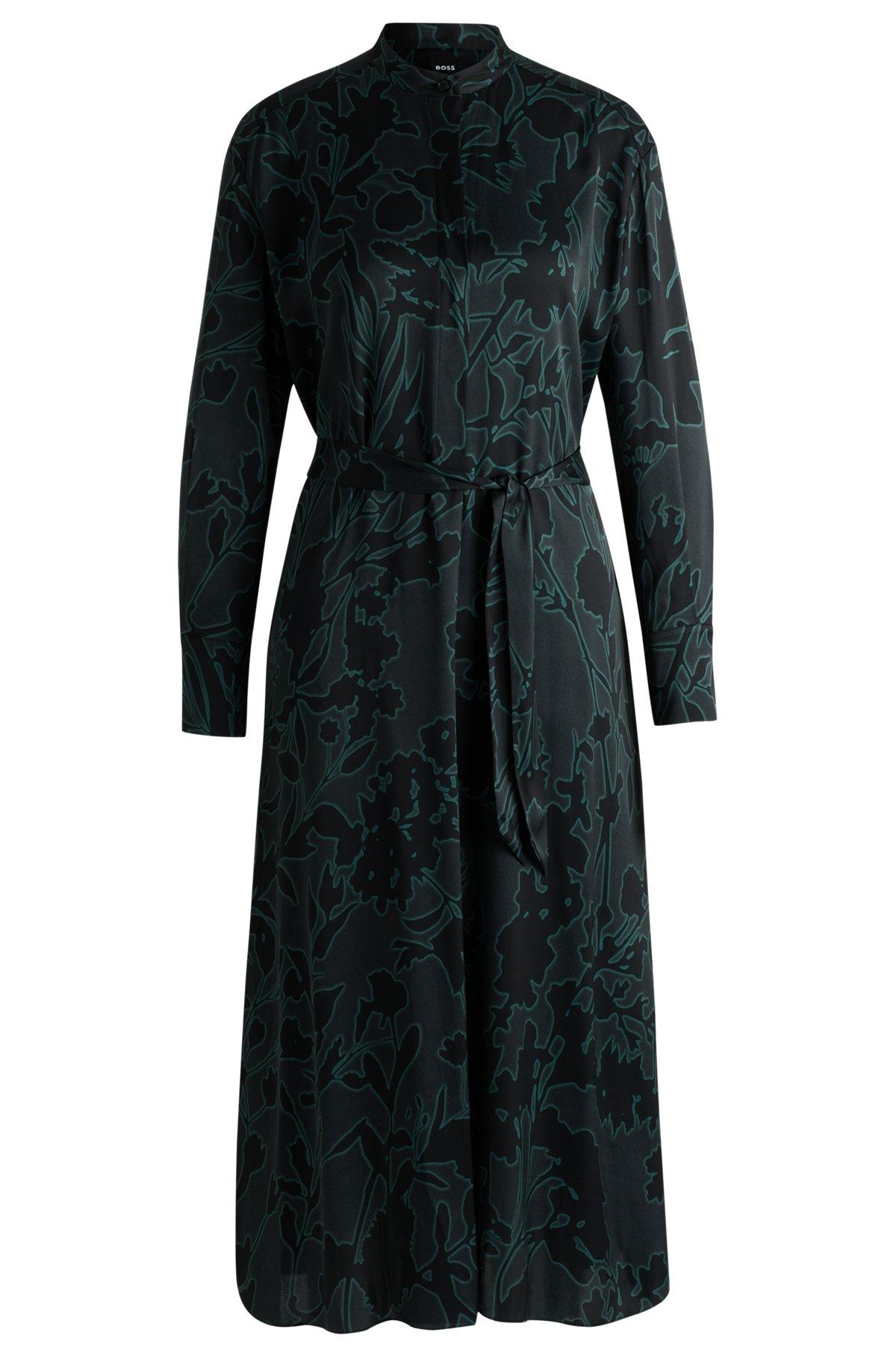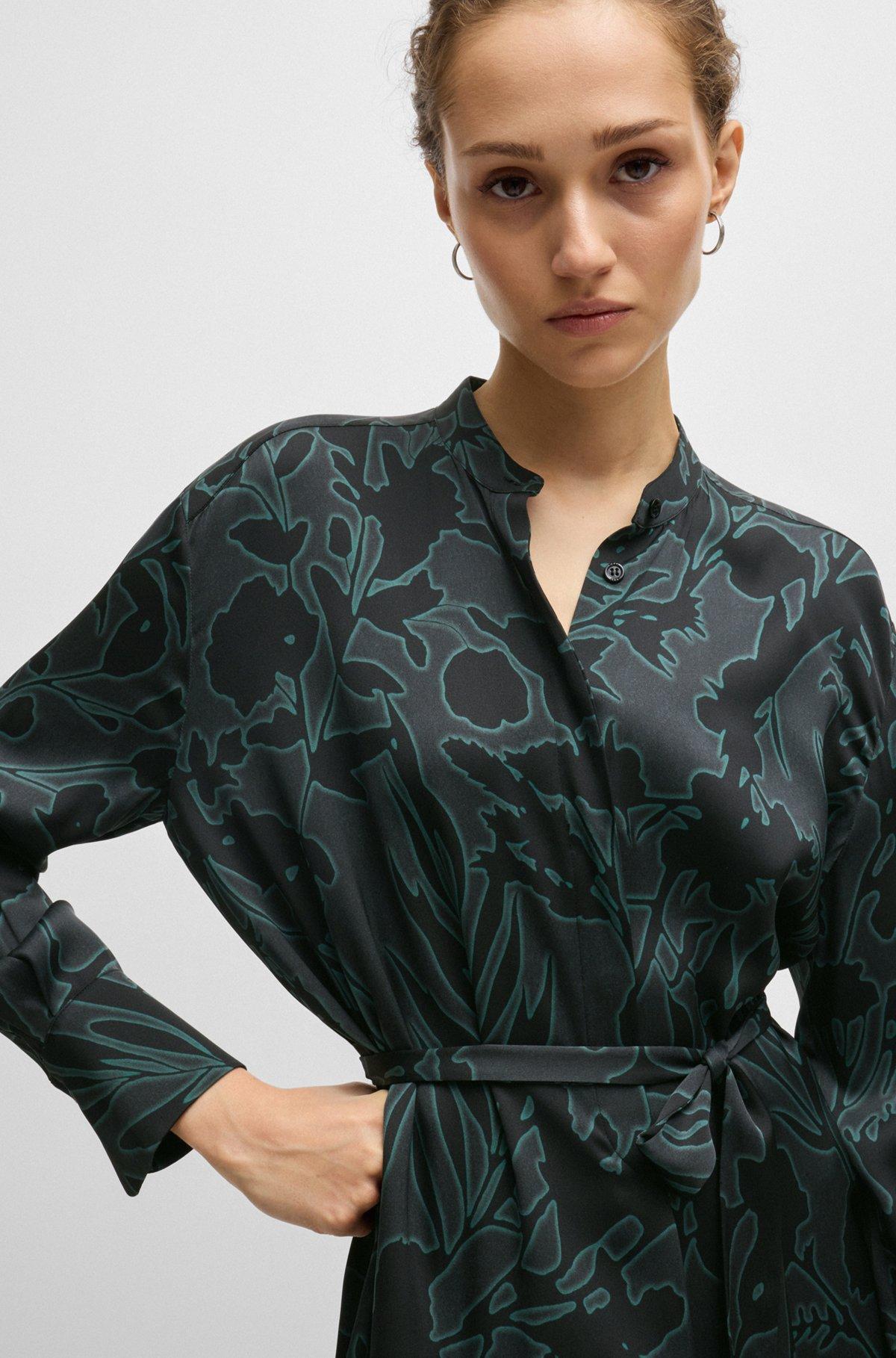 A flattering dress with side slits by BOSS. Printed all over with a floral motif, this long-sleeved dress is crafted in fluent material blended with silk and stretch. The waist has a removable belt for creating a more defined profile.