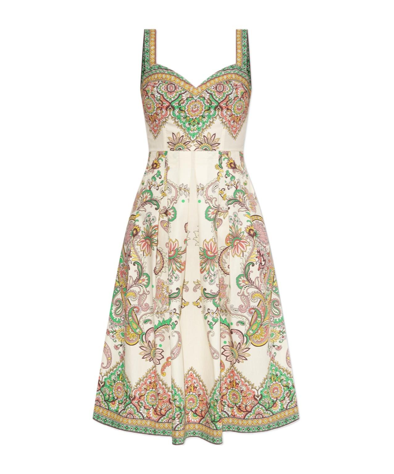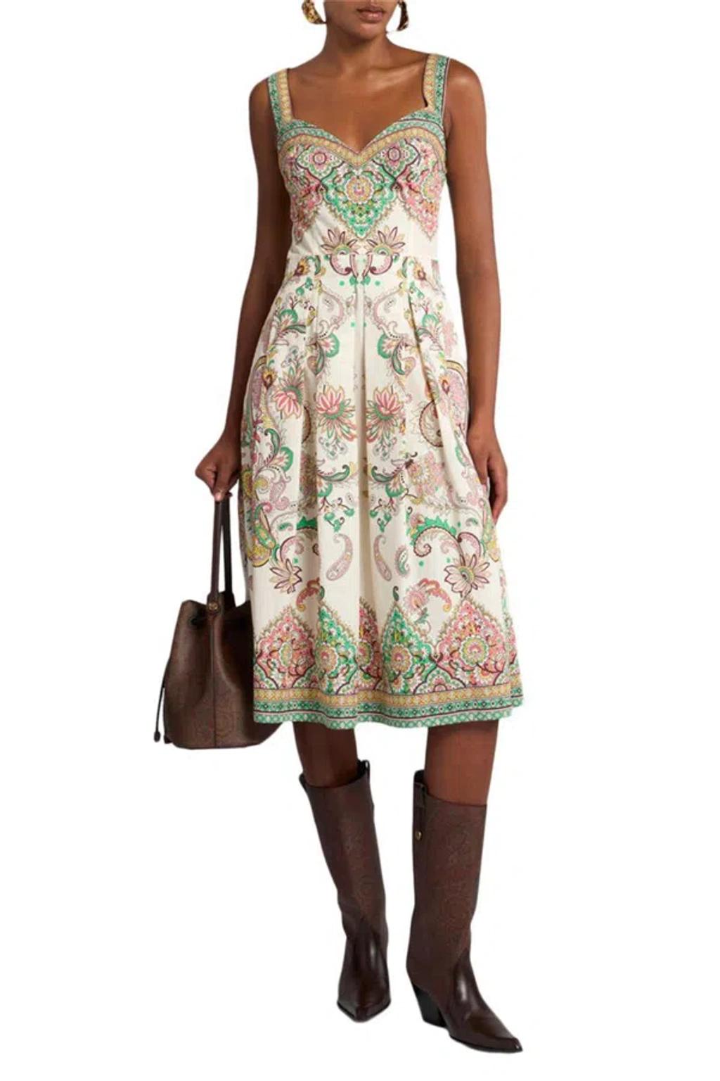 Shop Etro Paisley Print Midi Dress With Sweetheart Neckline And Pleated Skirt In Multi from 800+ stores, starting at $767. Etro dress decorated in a vibrant paisley pattern Sweetheart neckline Sleeveless Wide straps Side seam pockets Pleated midi skirt Hem falls below the knee Aline silhouette Side zip closure Cotton Professional cleaning recommended Made in Italy