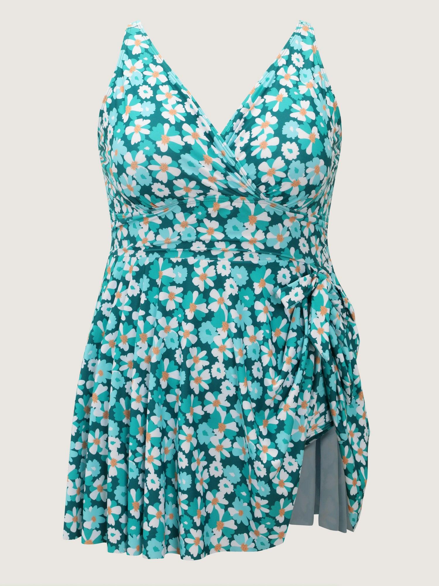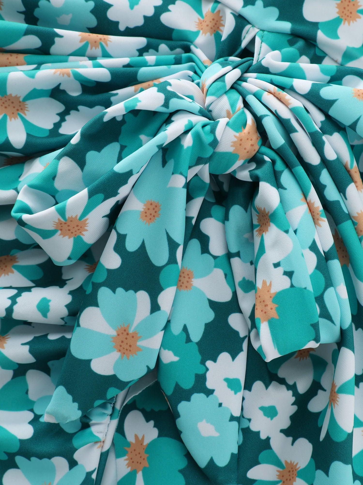 Shop Floral Print Knotted Tie Hem Swim Dress now and redefine your style with confidence at BloomChic. Tailored for mid and plus-size women. This trendy Swimwear Women, sizes 10-30. Color:Teal;Style:Resort;Cup Type:Removable cups;Functional Fabric:Chlorine Resistant,UPF 50 Sun Protection;Neckline:Heart neckline;Sleeve Type:Sleeveless;Prints:Floral;Details:Tie knot;Pocket:No-pocket;Belt:No-belt;Chest pad:Removable Padding;Lining:Lining;Closure Type:Non;Structural function:Cinched & Flared,Adaptive-Fit,Full Coverage,Anti-Float Ties;One-piece or split swim dresses:Built-in bottoms;Swimsuit types:Built-in Bikini Dress