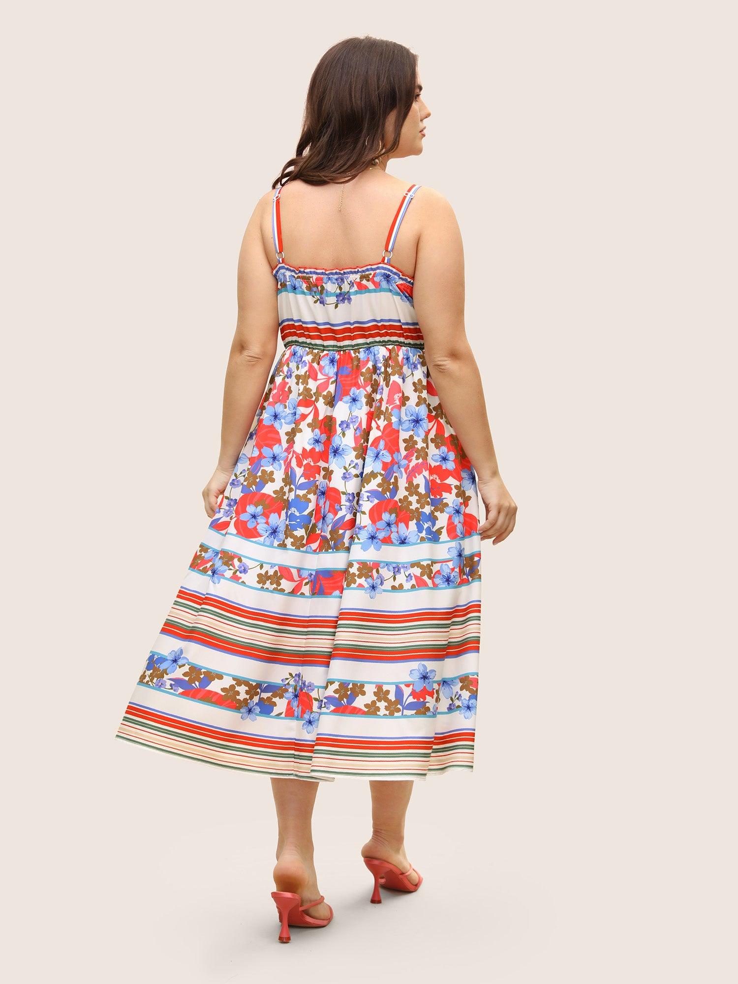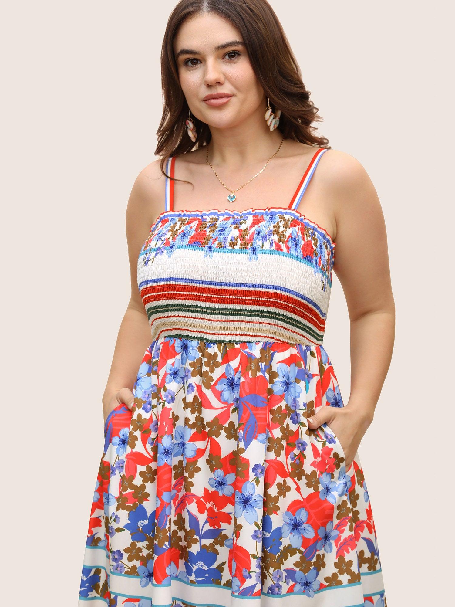 Shop Floral Print Shirred Cami Midi Dress now and redefine your style with confidence at BloomChic. Tailored for mid and plus-size women. This trendy Dress, sizes 10-30. You can never go wrong with BloomChic Dresses. Season:Summer;Color:Originalwhite;Style:Resort Vacation;Neckline:Square Neck;Sleeve Type:Sleeveless;Prints:Bohemian print;Pocket:Side seam pocket;Belt:No-belt;Closure Type:Non