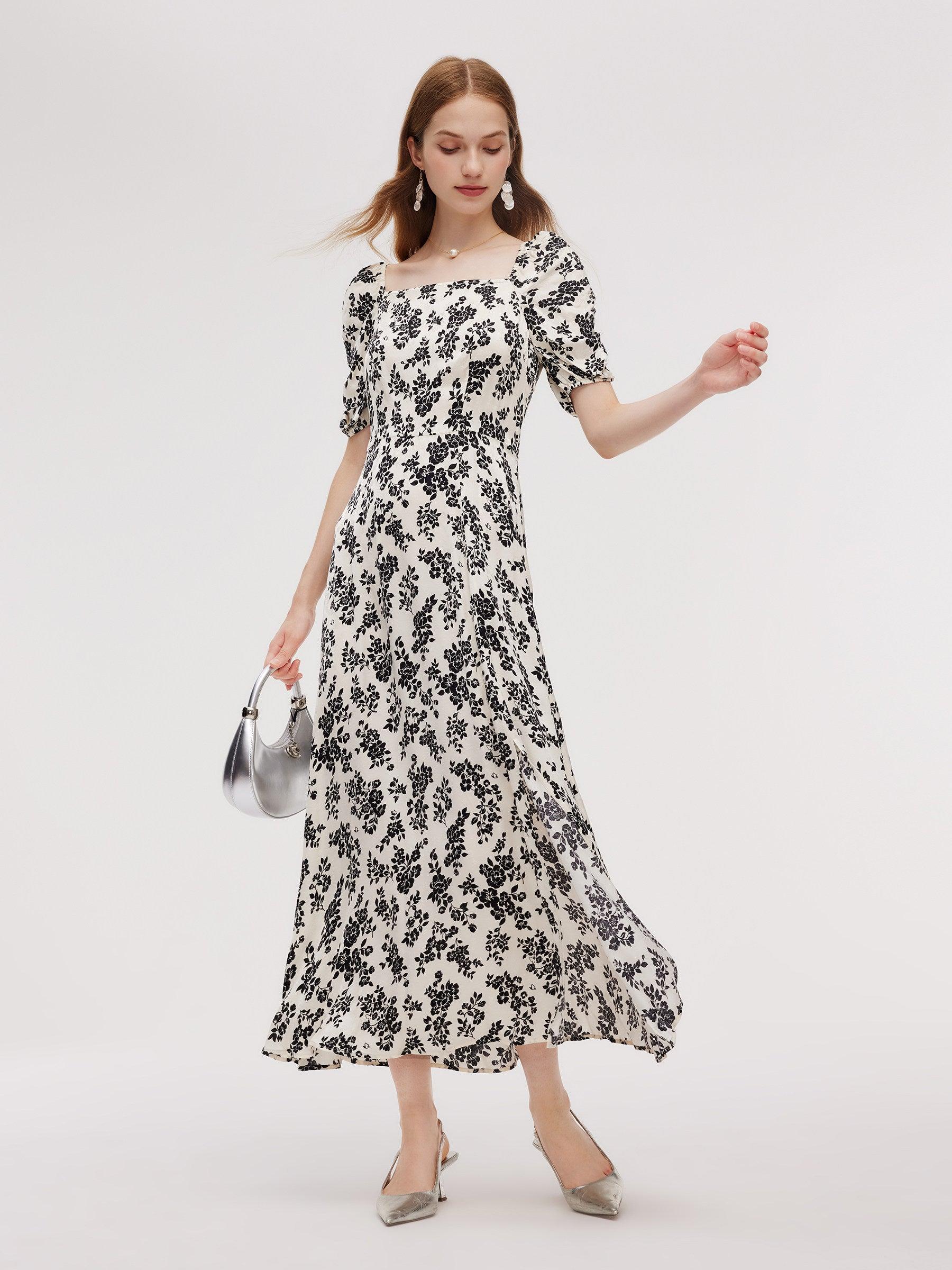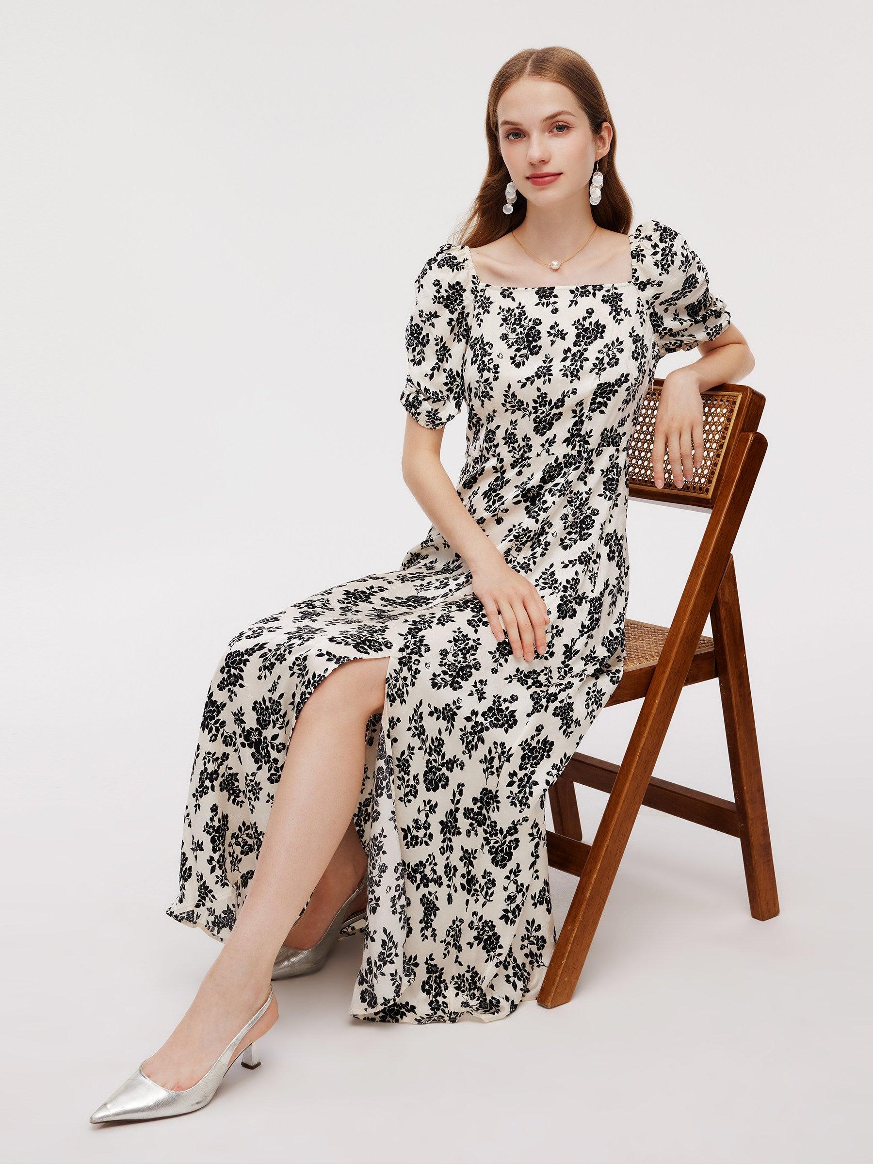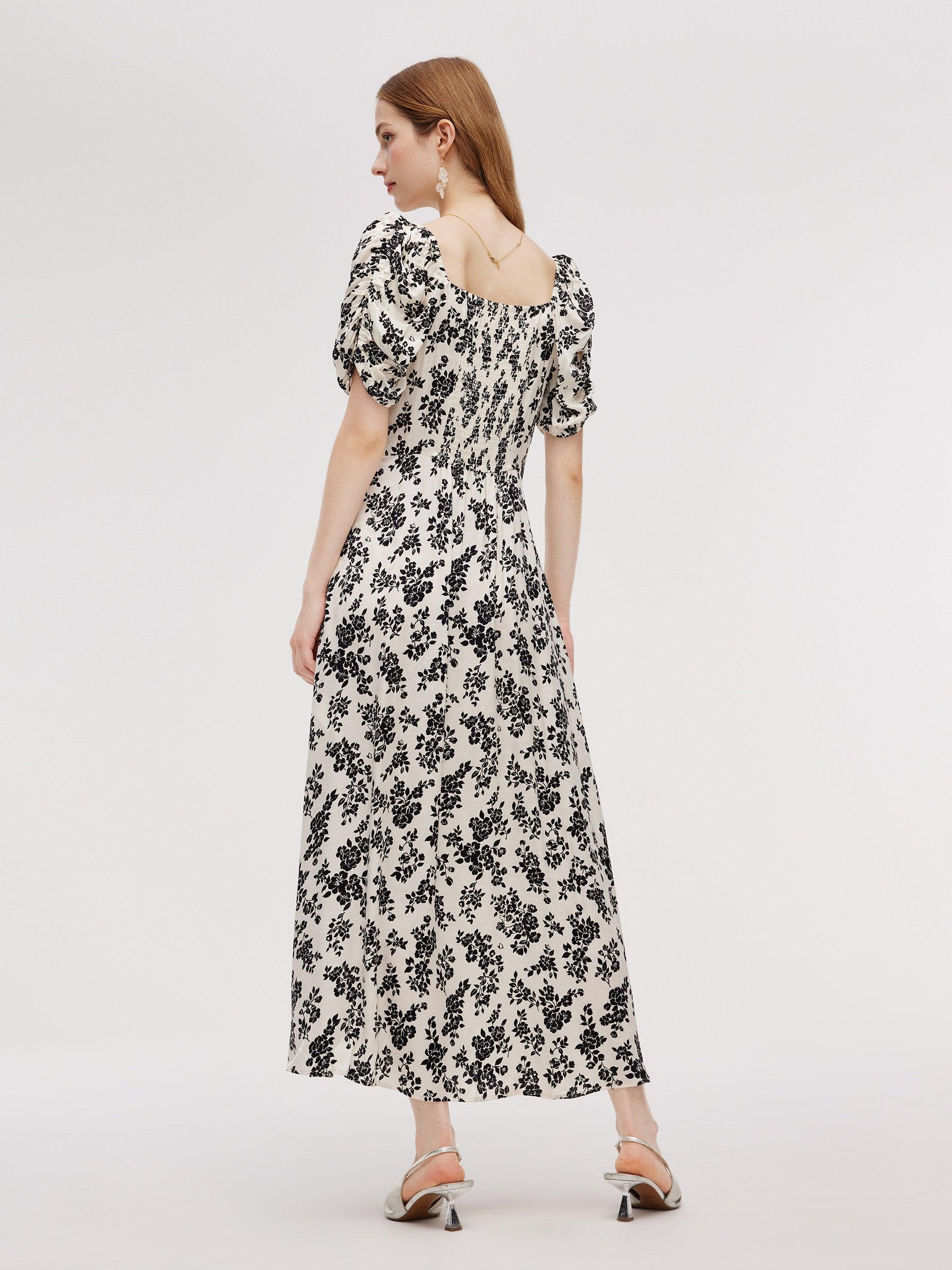 -Soft and comfortable -Ruched sleeve design -Smocked back design Shaped from comfortable and breathable fabric, this maxi dress includes a square neckline that frames your collarbone elegantly. The elastic cuffs and side slits add a touch of modernity, while the gathered waist enhances your silhouette. Perfect for a ro