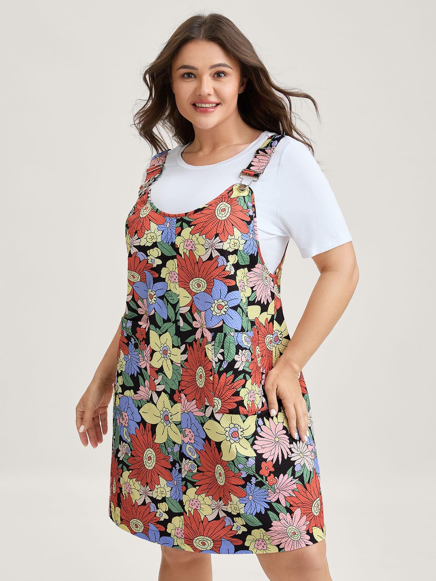 Floral Print Textured Overall Straps Dress Female