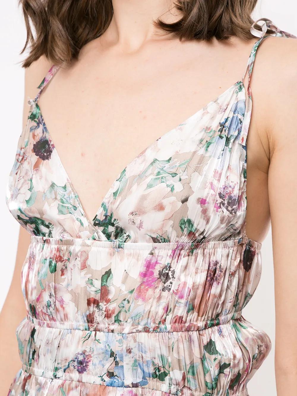 Multicolour silk floral ruffle camisole silk top from Haculla featuring a floral print, a v-neck, a ruffled design and spaghetti straps.