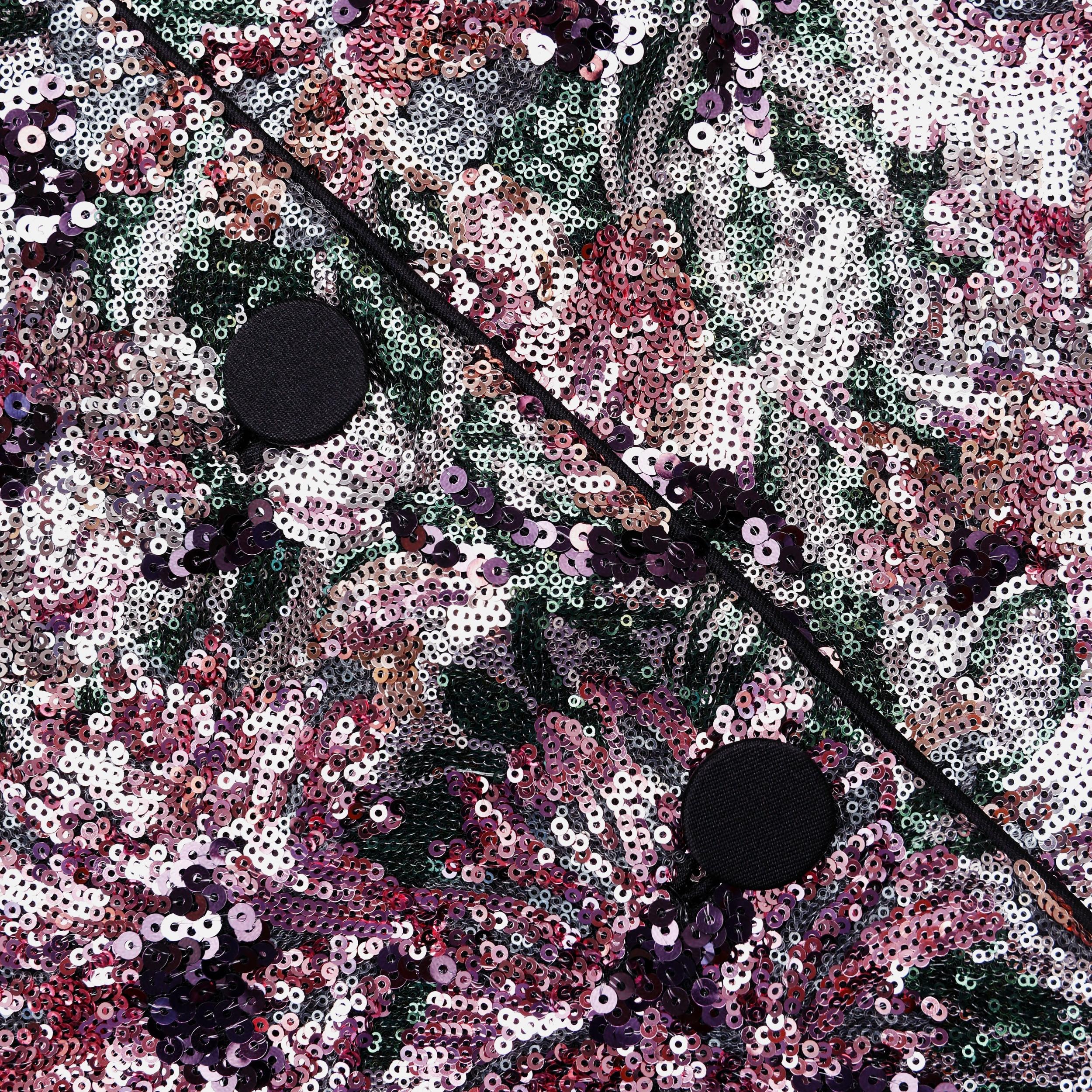 Dazzling sequin embroidery in vibrant multi-coloured florals gives this jacket an air of opulent charm. Layer with our matching skirt for a playful party look or pair with denim for a high-low mix.True to sizeBoxy fitButton closure down frontShoulder padsMatching skirt availableModel is 5ft10/178cm and wears a size UK 6