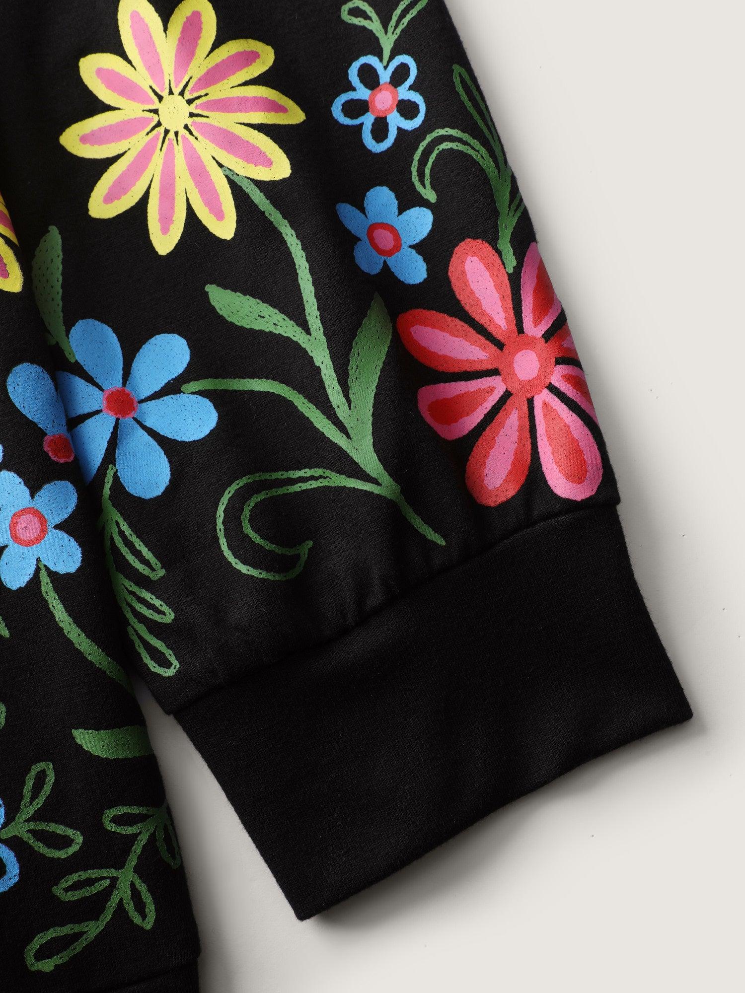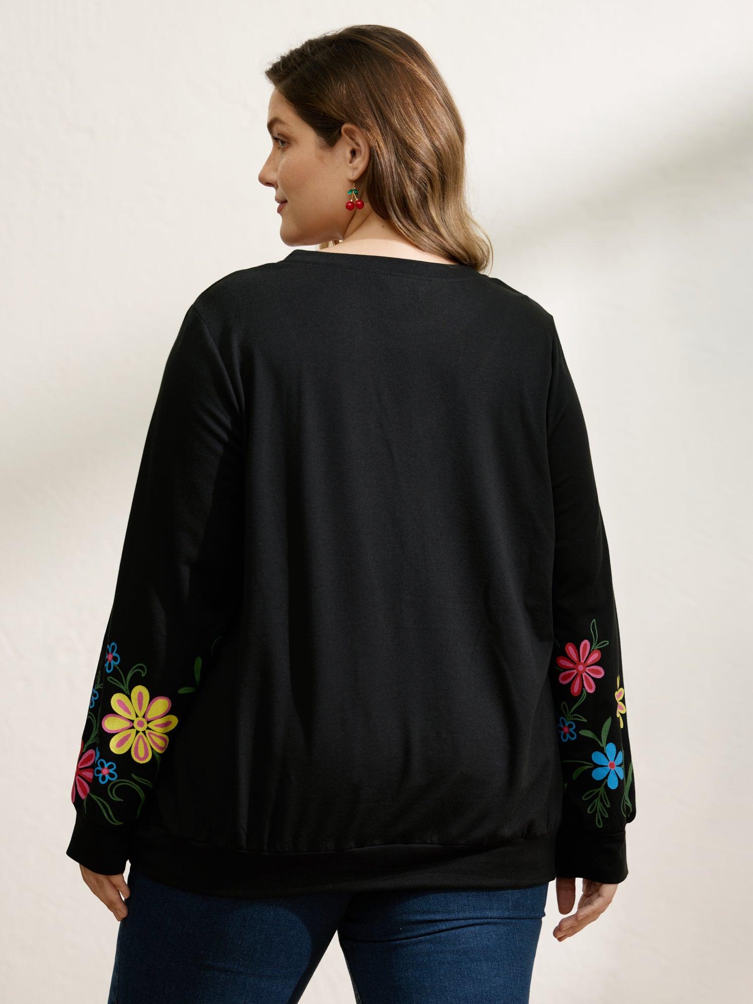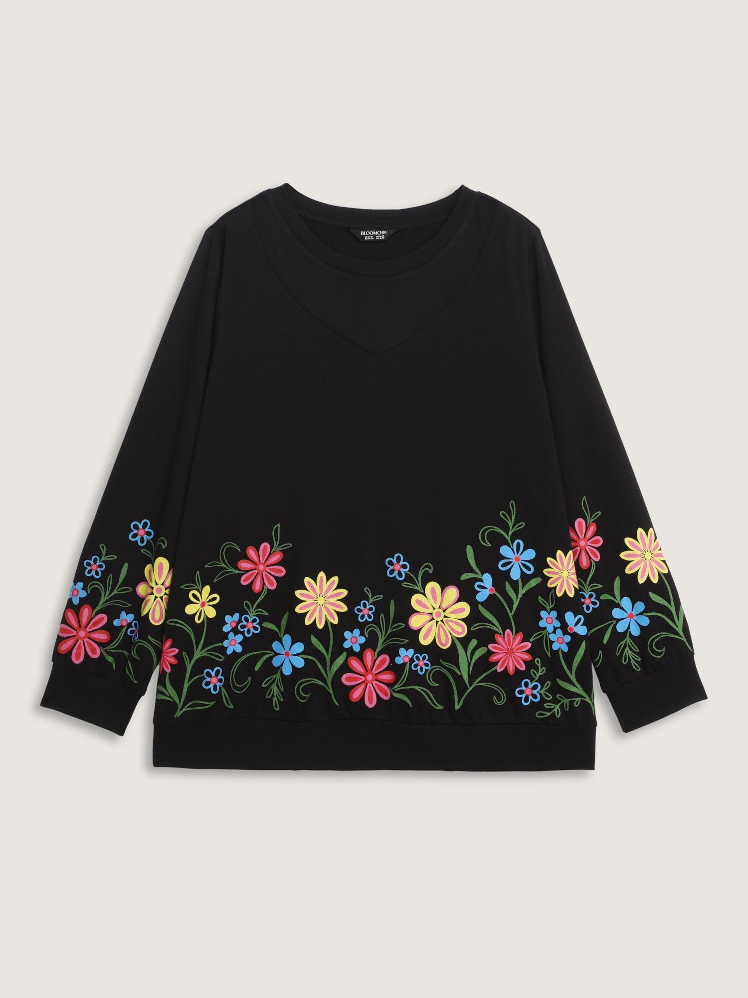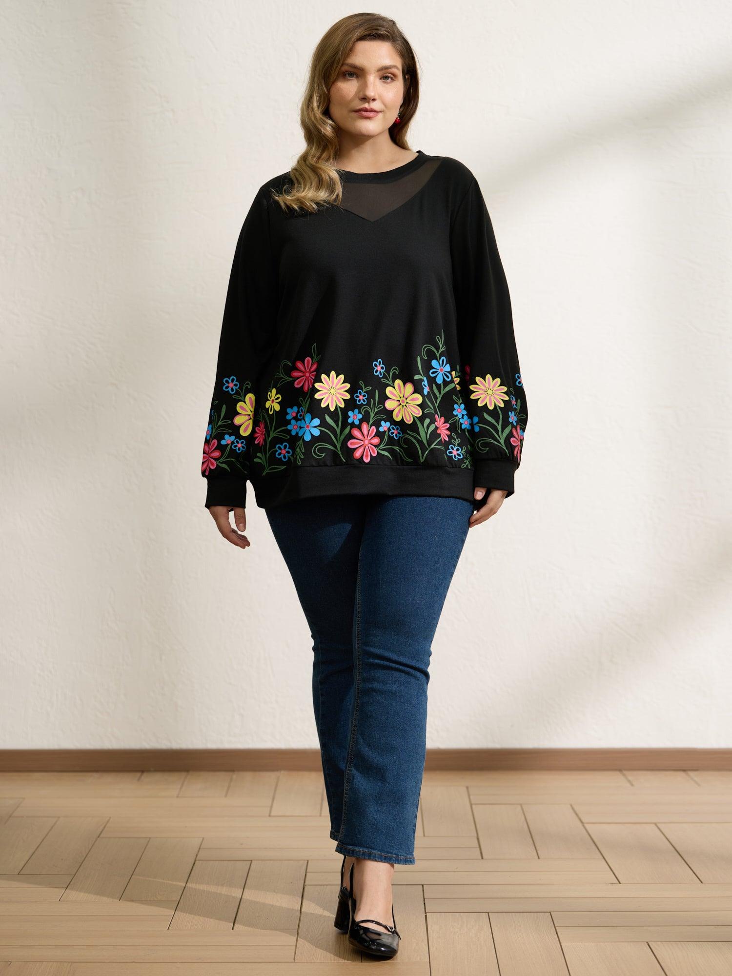 Floral Sheer Lined Contrast Sweatshirt Female