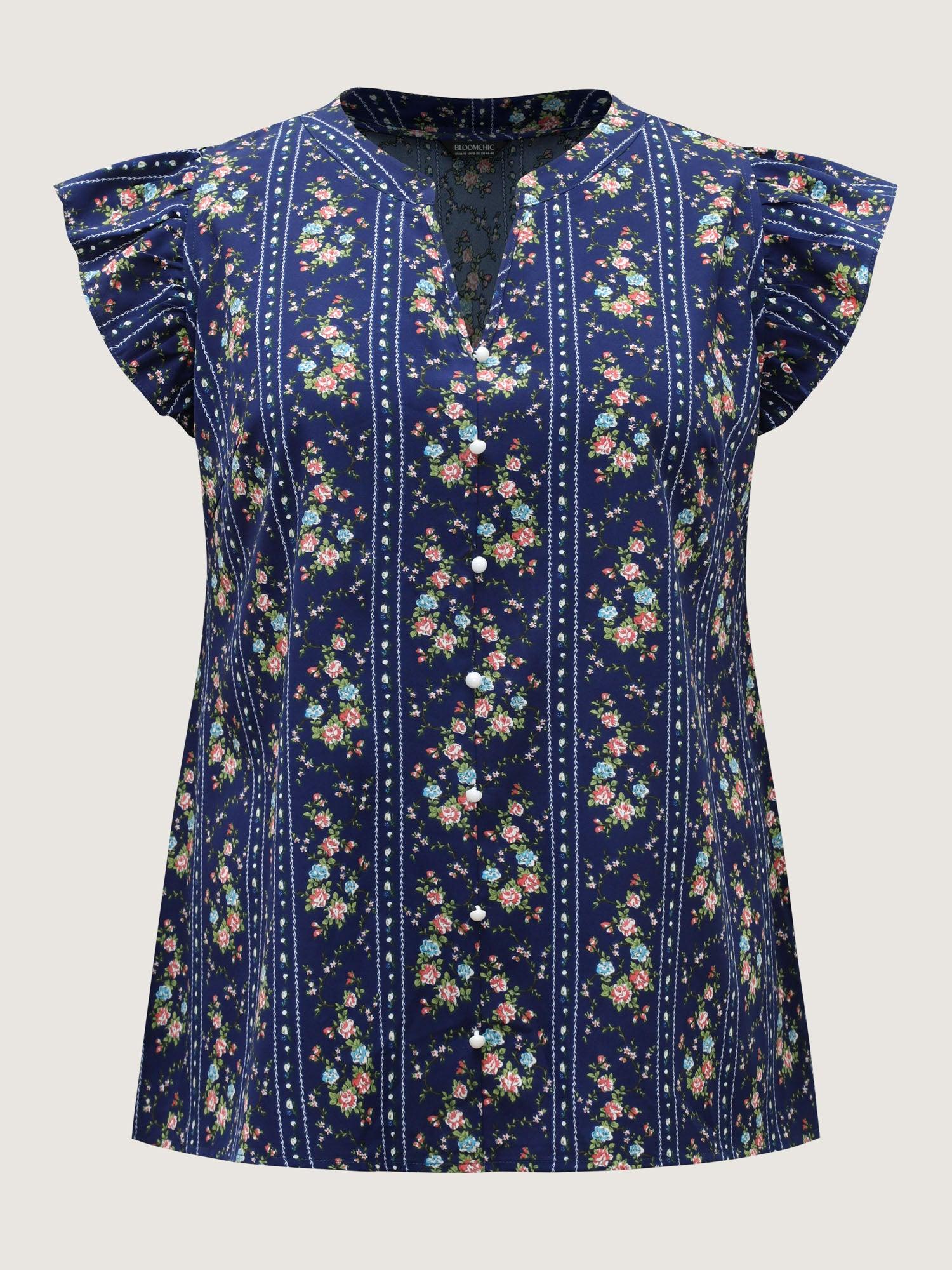 Floral Stripes Flutter Sleeve Blouse Female